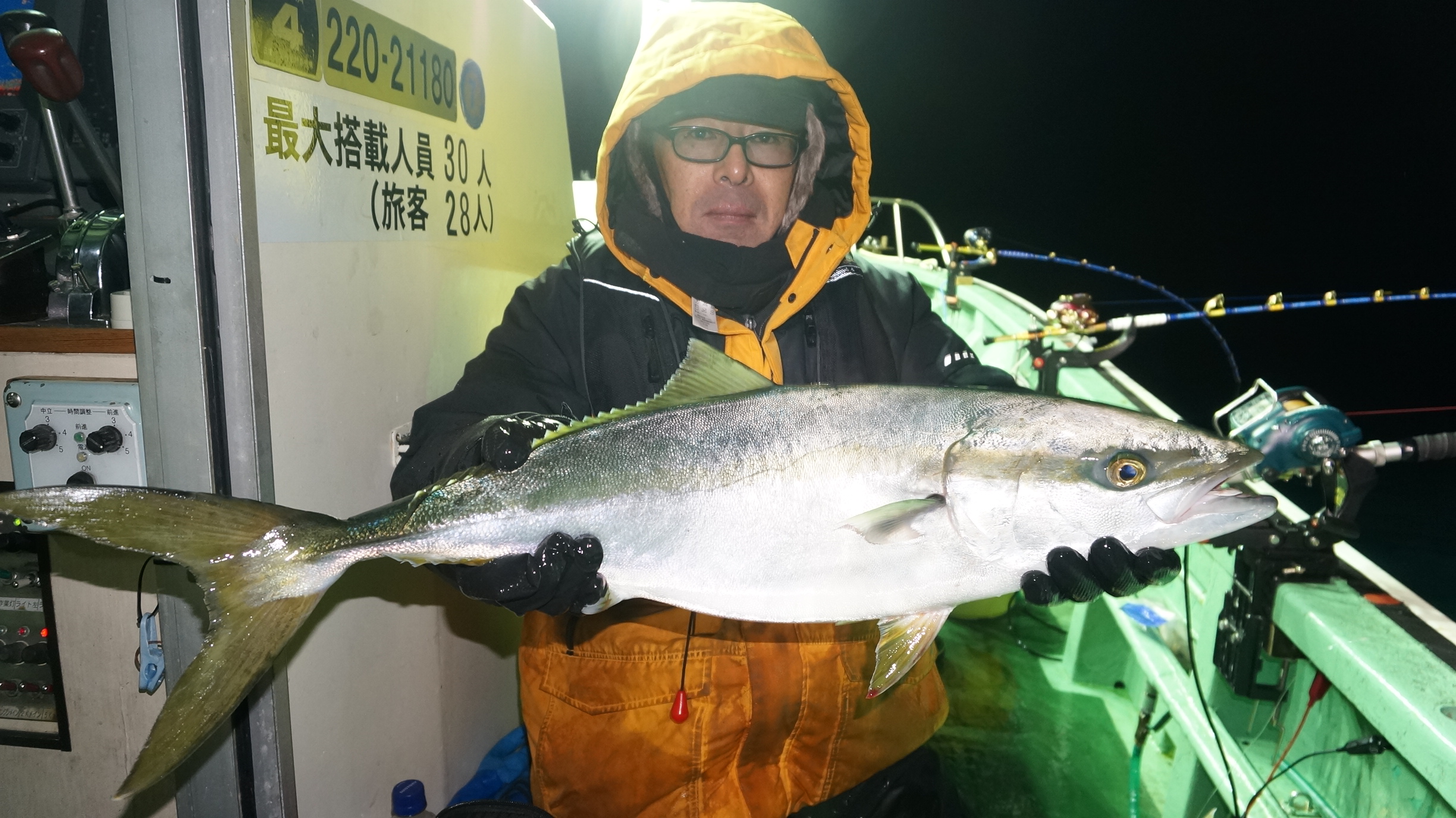 2025年12月20日粟島沖夜ブリ真鯛釣り釣果 つり情報 2025年12月21日 本日、第八恵陽丸御予のお客様に、ご迷惑をおかけしお詫び申し上げます。 海上穏やかで、魚影流れ良く、8〜13kぶり、5〜6kワラサ、明るい時間より、食い活発のなり、 大爆釣大漁に、クウラ-他に、入らず20時沖上がり帰港しました。 次回海上穏やかな日、出船募集します、御予約お待ちしております。