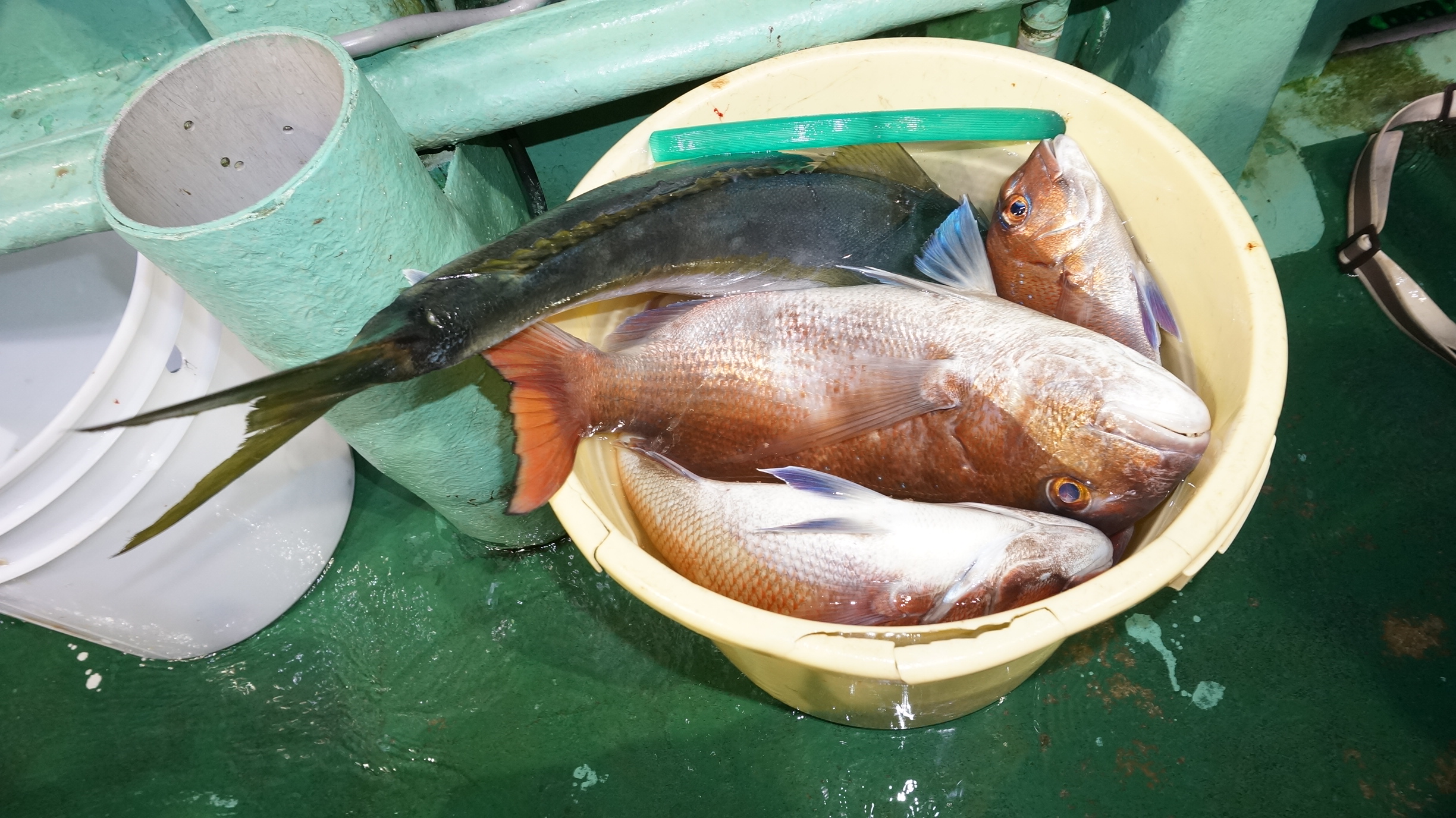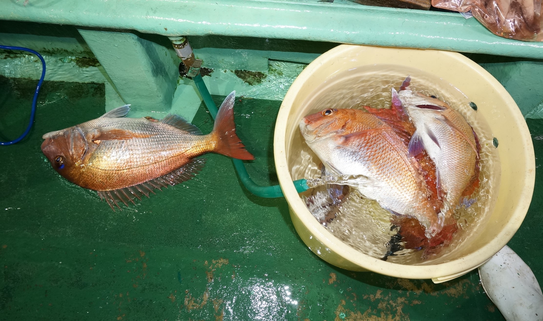 2025年10月25日粟島沖夜ブリ真鯛釣り釣果 つり情報 2025年10月26日 海上穏やか、水温22.5度、魚影良かつたが、後半流れ無く、苦戦しましたが大型真鯛、1.8~4㎏ ワラサ、ヒラマサ2.5〜3k、オニカサゴ、メバル、サバ、アオリイカ 次回海上穏やかな日に、募集しますので、御予約お待ちしております。