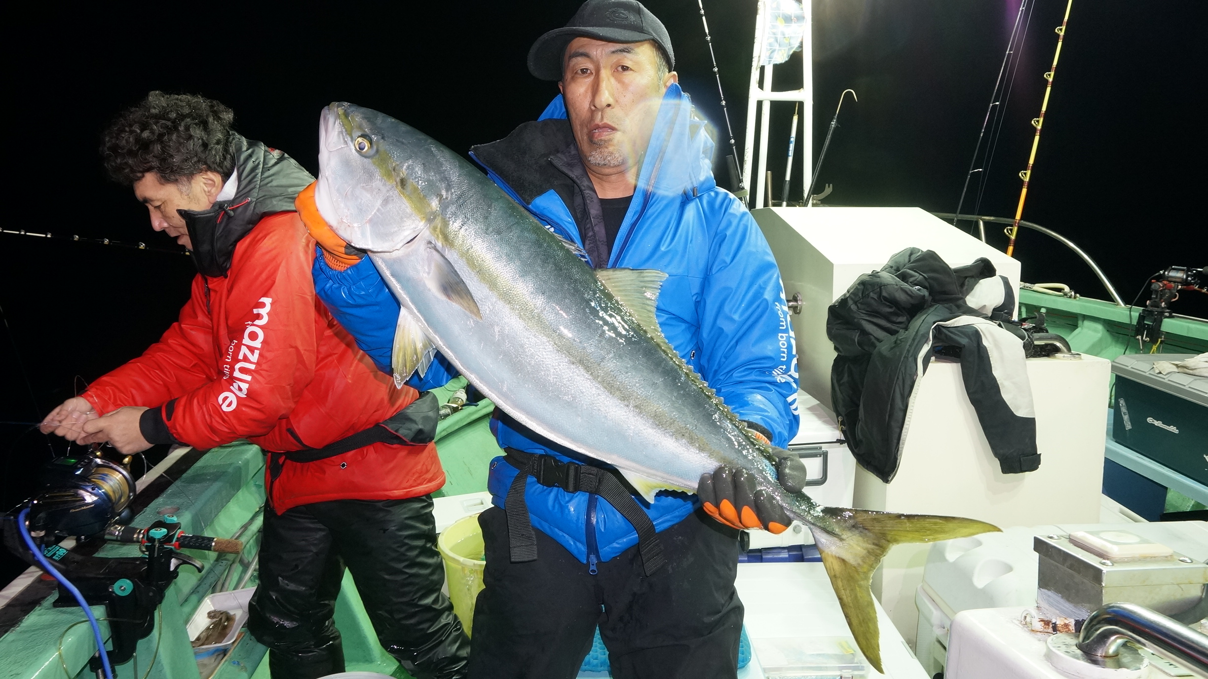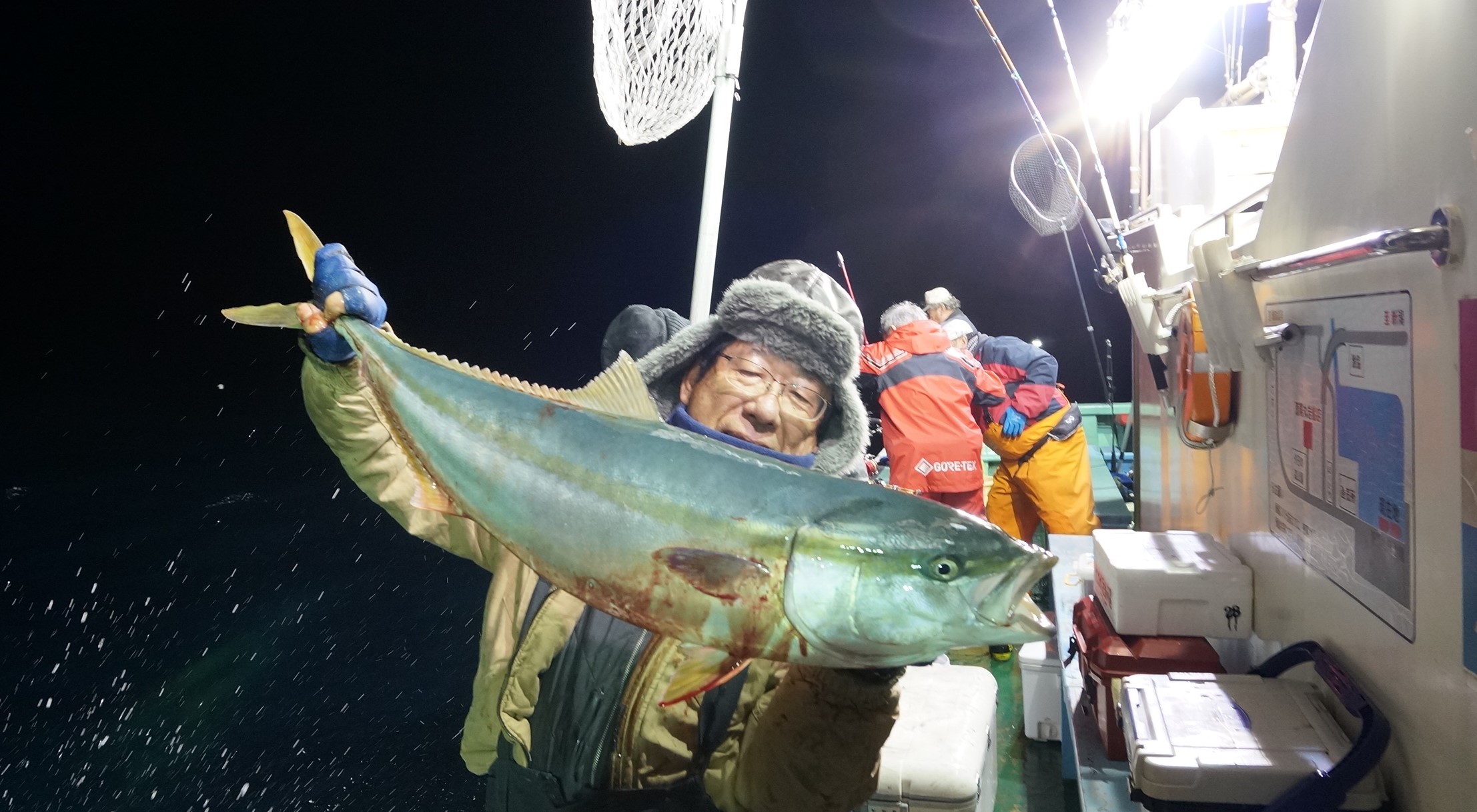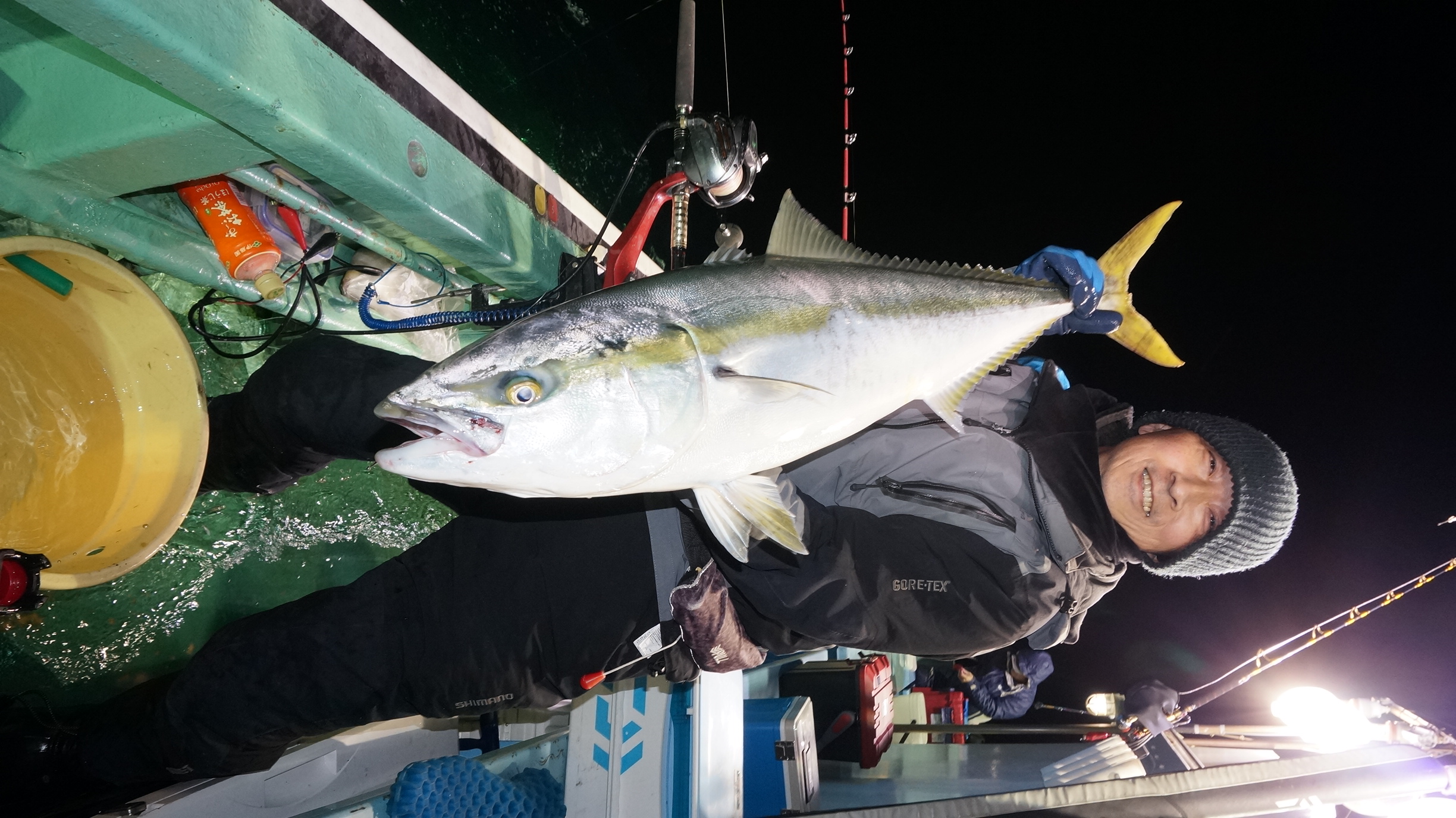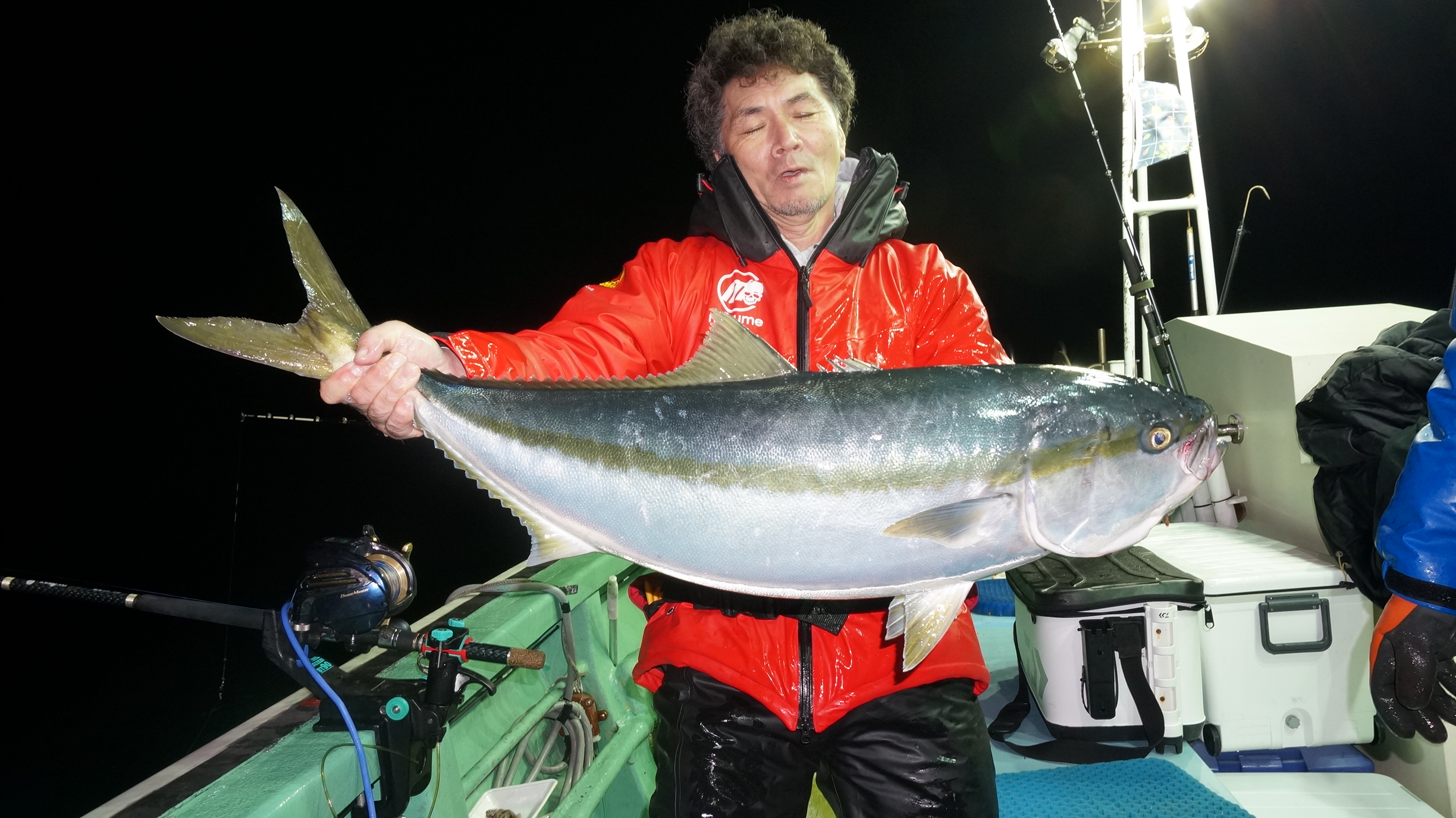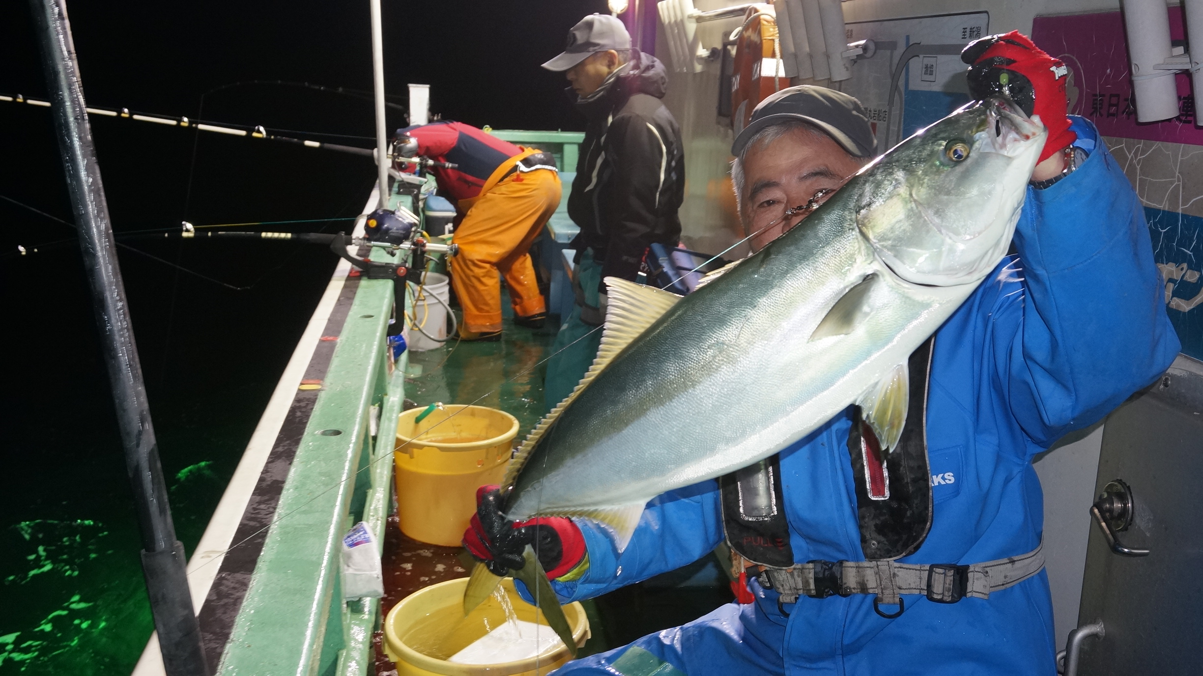 2025年11月29日粟島沖夜ブリ真鯛釣り釣果 つり情報 2025年11月30日 天候回復、出船、魚影流れ良く、大型ブリ8〜15k、ワラサ4k~5k、真鯛多数匹、つれました。 天候回復次第に募集します、御予約お待ちしております。 15kぶり PR