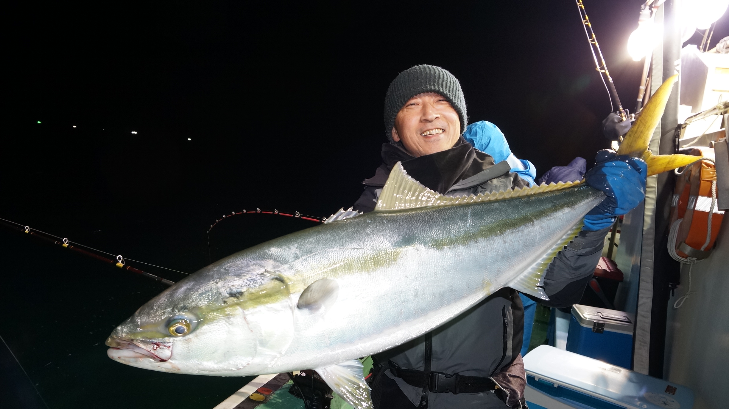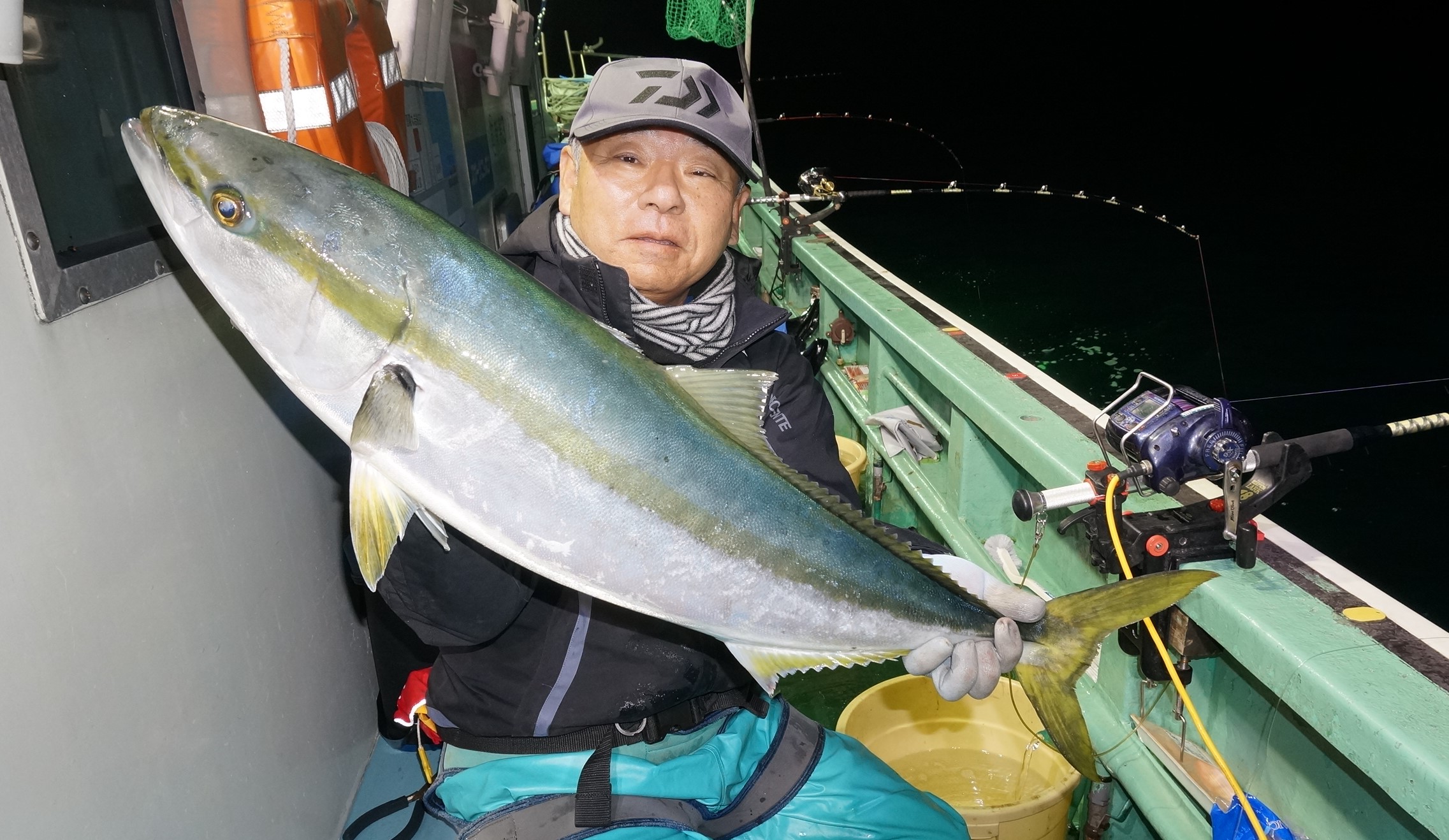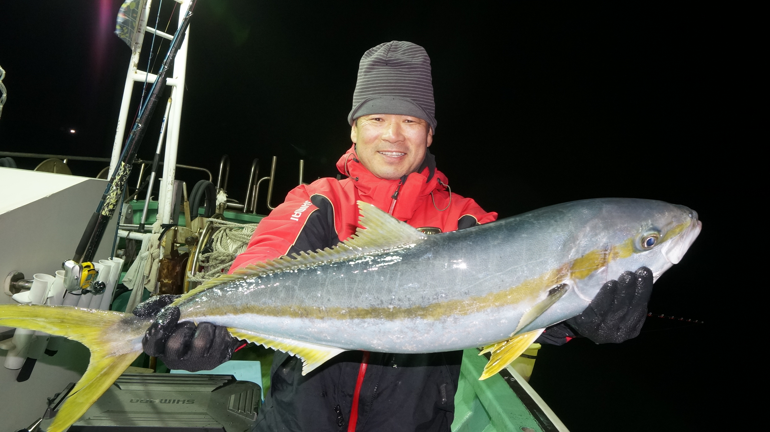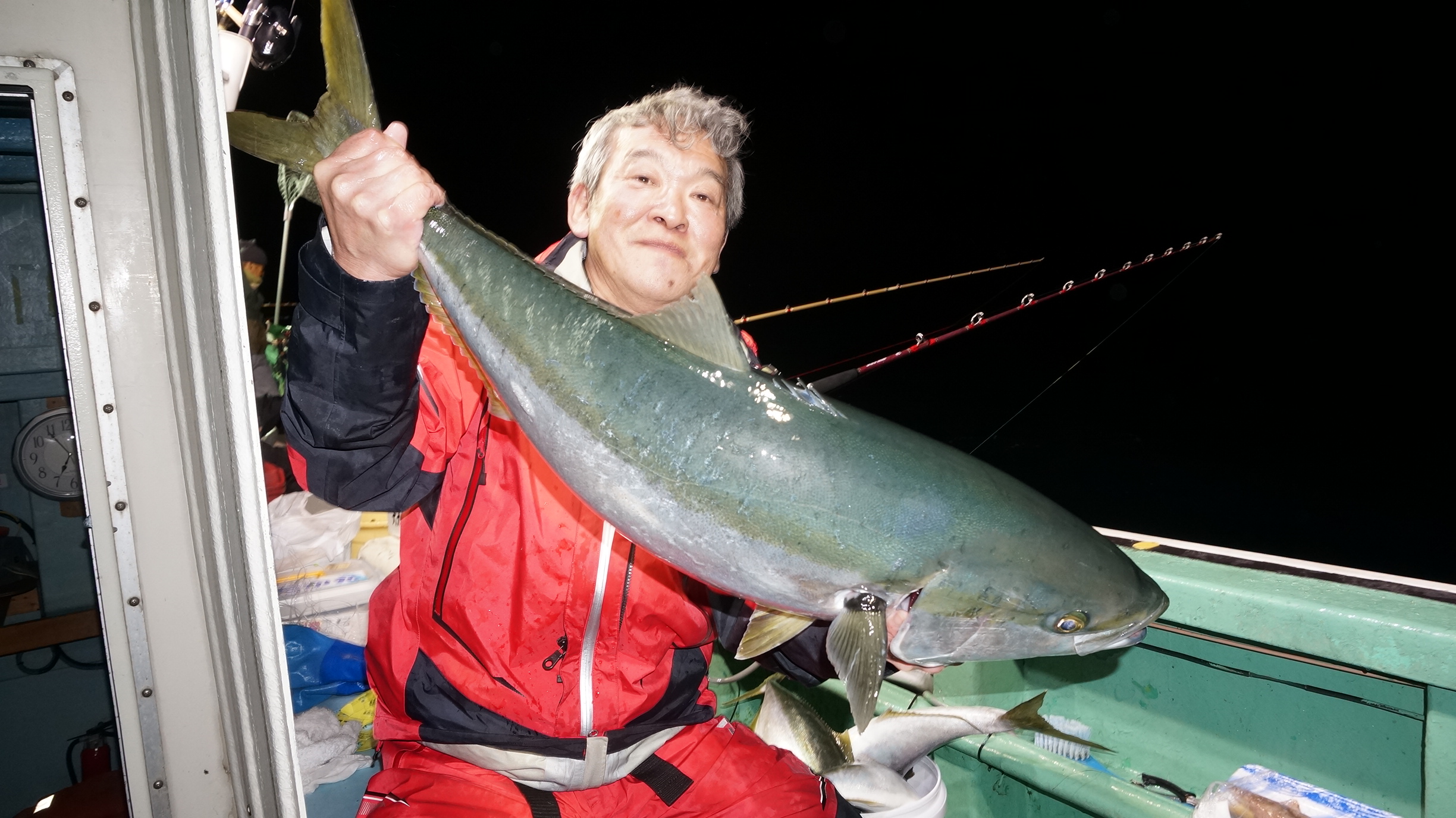2025年11月29日粟島沖夜ブリ真鯛釣り釣果 つり情報 2025年11月30日 天候回復、出船、魚影流れ良く、大型ブリ8〜15k、ワラサ4k~5k、真鯛多数匹、つれました。 天候回復次第に募集します、御予約お待ちしております。 15kぶり PR