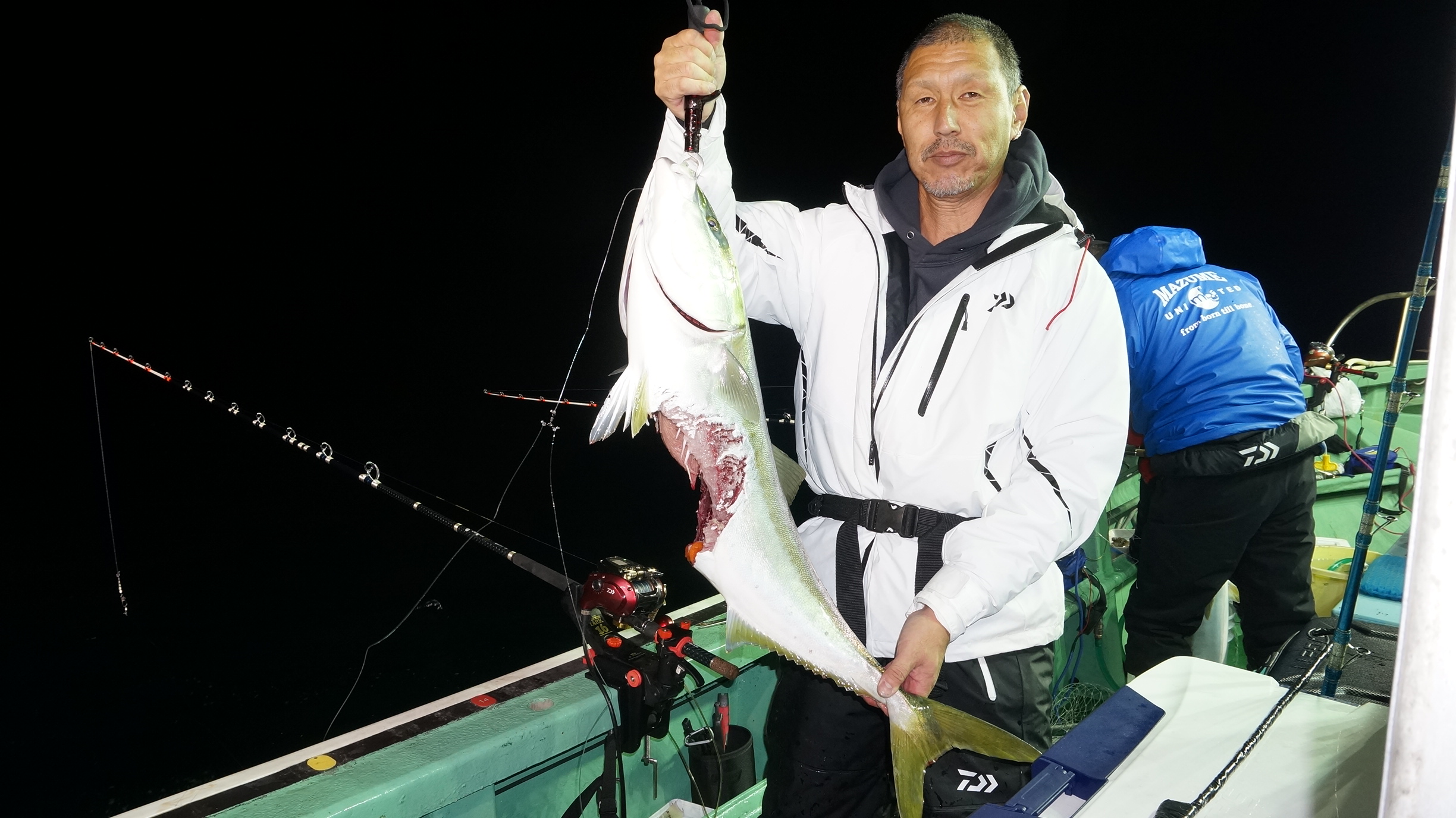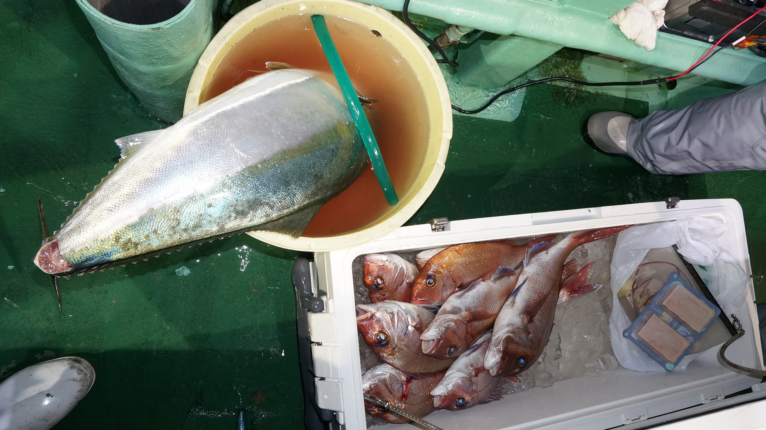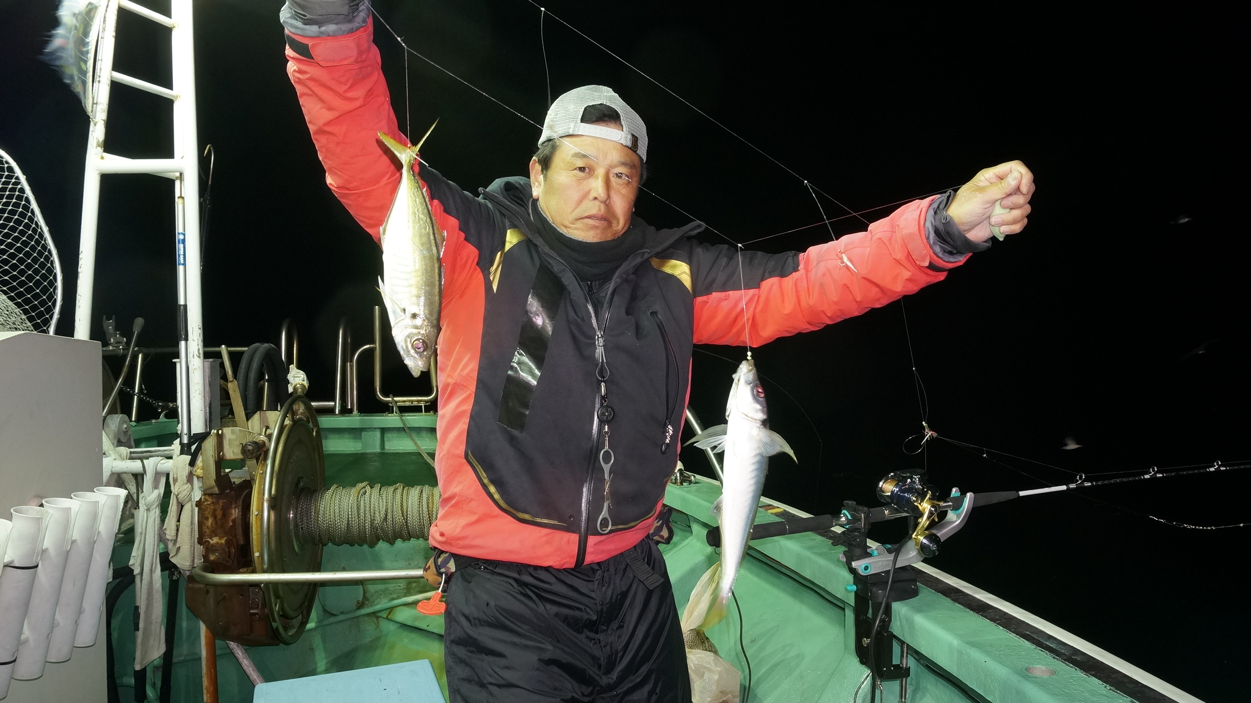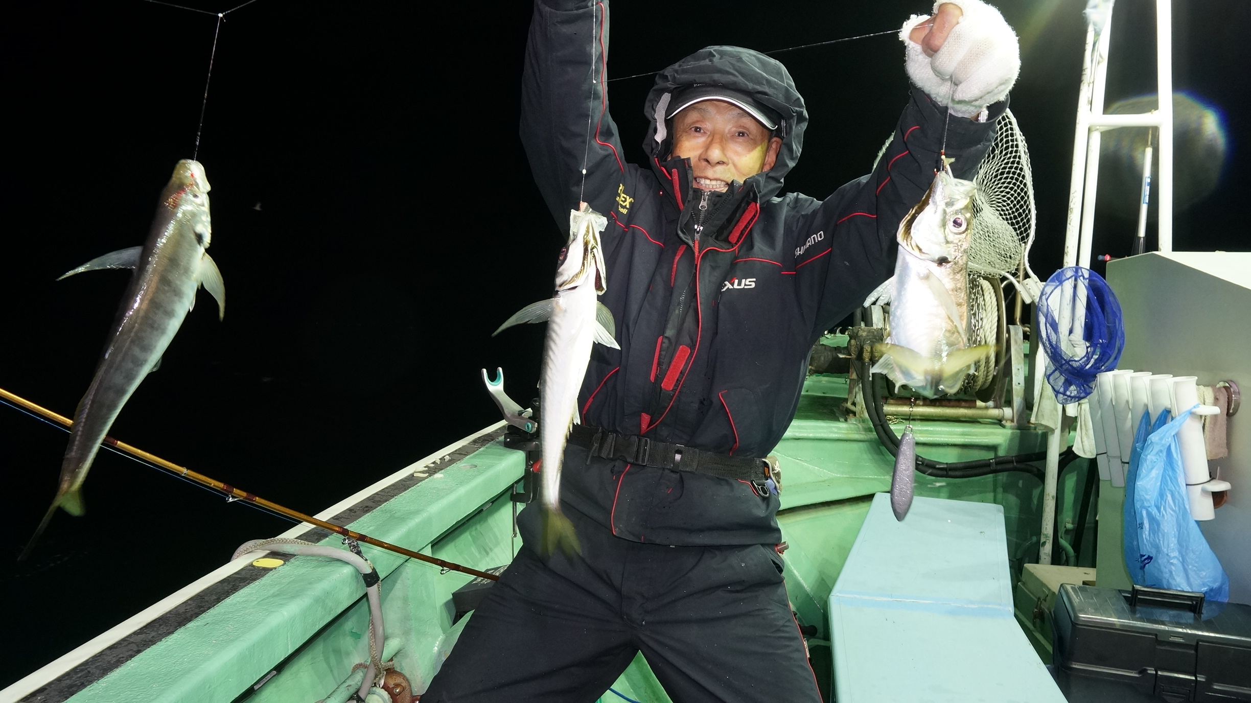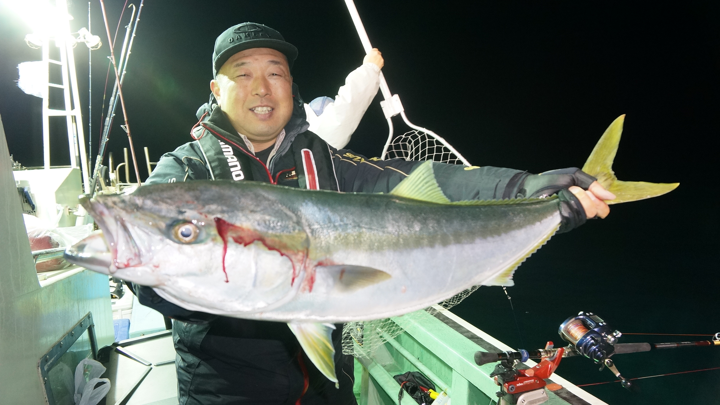 2025年11月29日粟島沖夜ブリ真鯛釣り釣果 つり情報 2025年11月30日 天候回復、出船、魚影流れ良く、大型ブリ8〜15k、ワラサ4k~5k、真鯛多数匹、つれました。 天候回復次第に募集します、御予約お待ちしております。 15kぶり PR