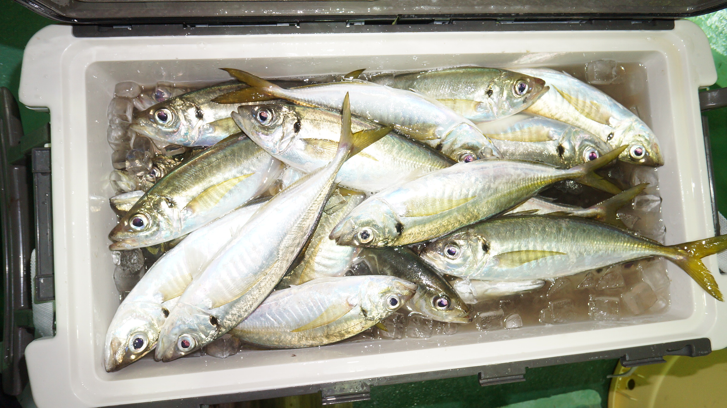 2025年6月14日岩船沖夜アジ真鯛五目釣果 つり情報 2025年06月18日 本日海上穏やか、出船時間より、大雨警報どしゃ降りに、写真撮影出来ず 魚影良く、途中からサバ少なくなり、大型アジ爆釣、真鯛4.5k 大型アジ、真鯛有望、御予約お待ちしております。