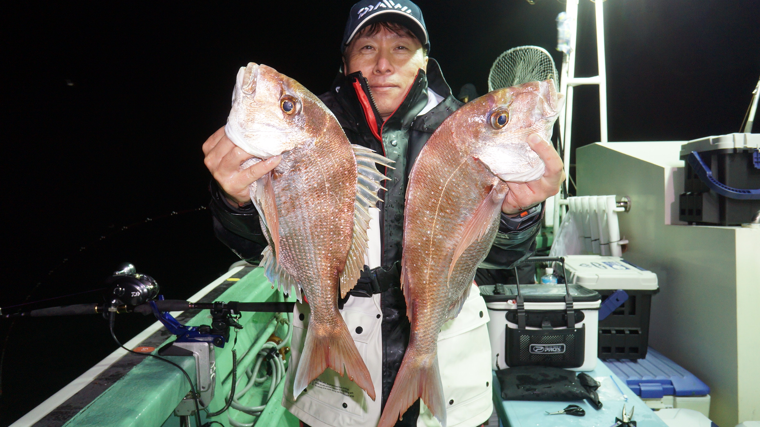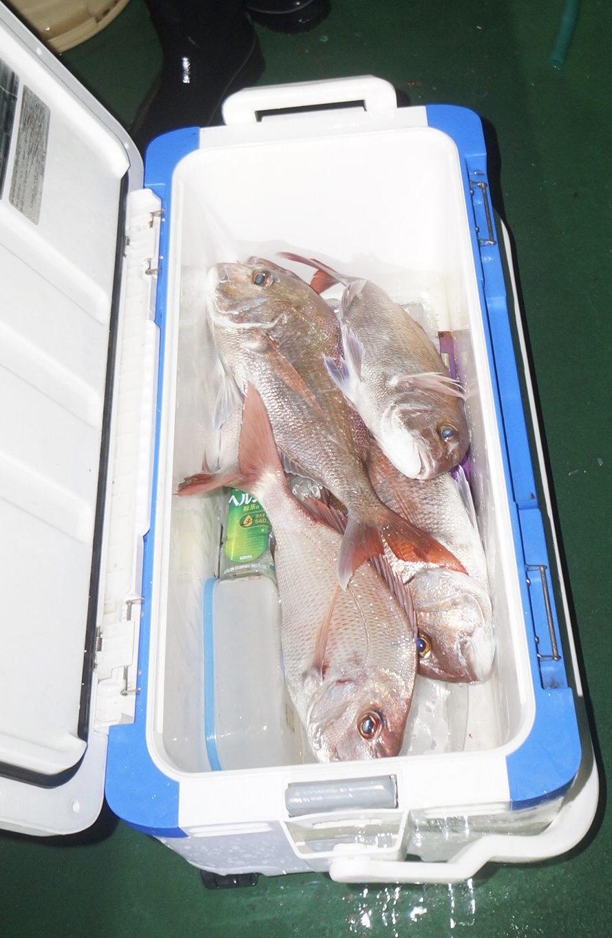 2024年10月13日岩船沖夜アジ真鯛五目釣り釣果 つり情報 2024年10月16日 天候晴れ、海上多少波うねり有りで、苦戦しましたが、真鯛1.8〜3k、大型アジ、サワラ多数 大型アジ真鯛有望、御予約お待ちしております。