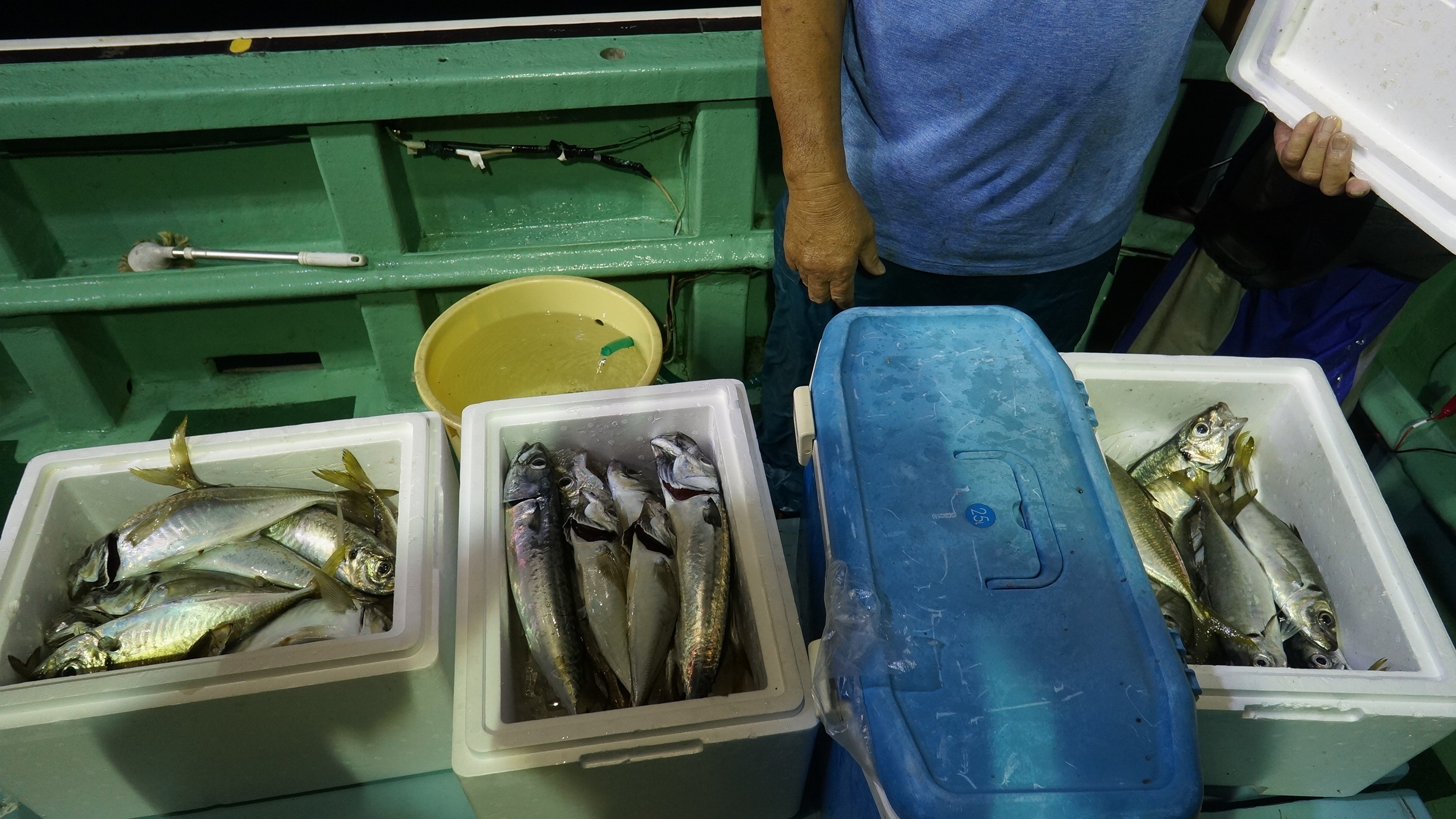 2024年8月31日岩船沖夜アジ真鯛五目釣り釣果 つり情報 2024年09月01日 台風の影響無く出船、海上うねり、流れ悪く、アジ苦戦、真鯛竿頭6匹、船中14匹他サバ 大型アジ真鯛有望、御予約お待ちしております。