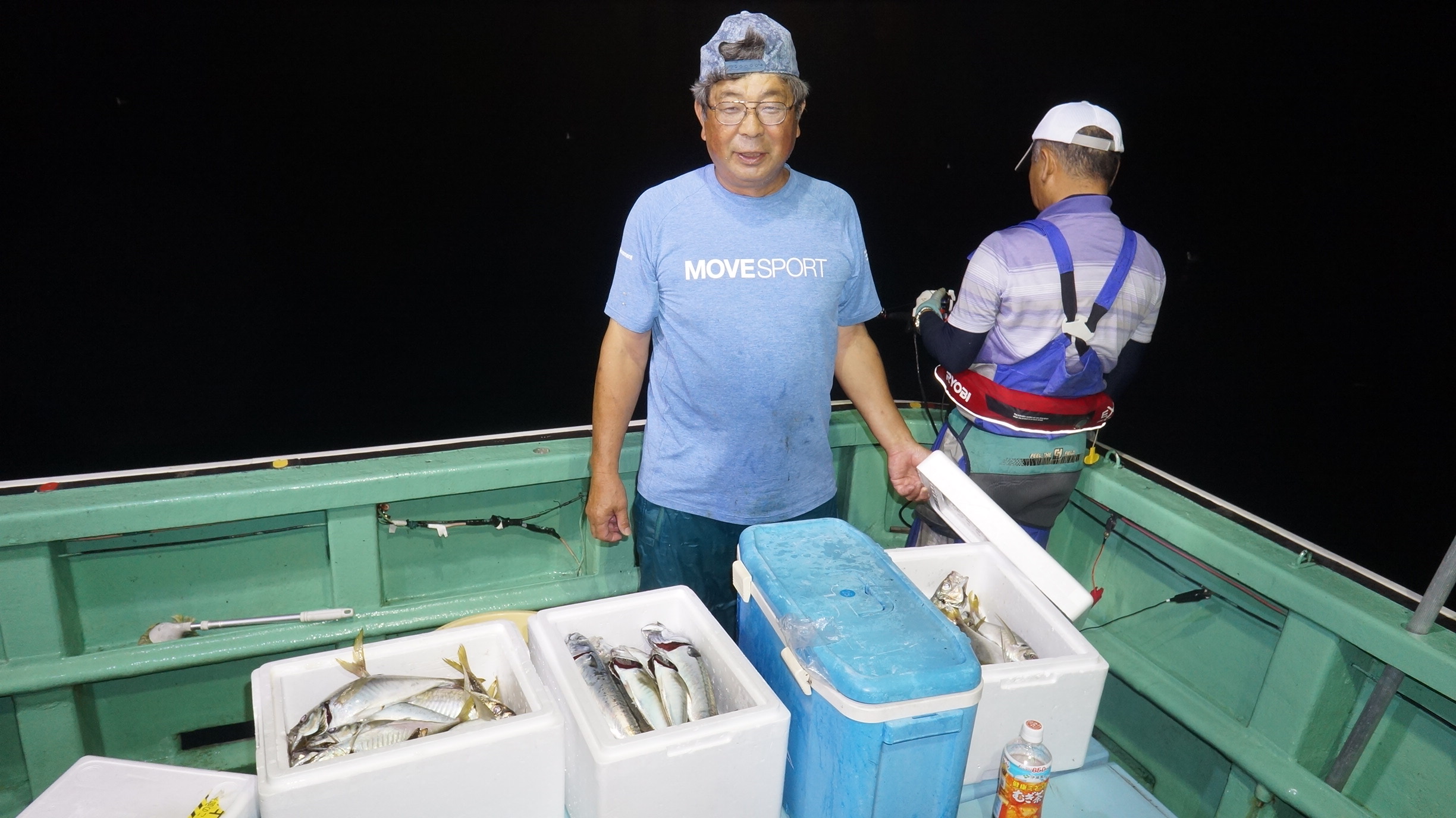 2024年8月28日夜アジ真鯛五目釣り釣果 つり情報 2024年08月29日 本日も海上穏やか流れ良く、大型アジ入れ食い大漁、他サワラ、真鯛も竿頭14匹、船中2〜4k船中46匹 大型アジ真鯛有望、、御予約お待ちしております。