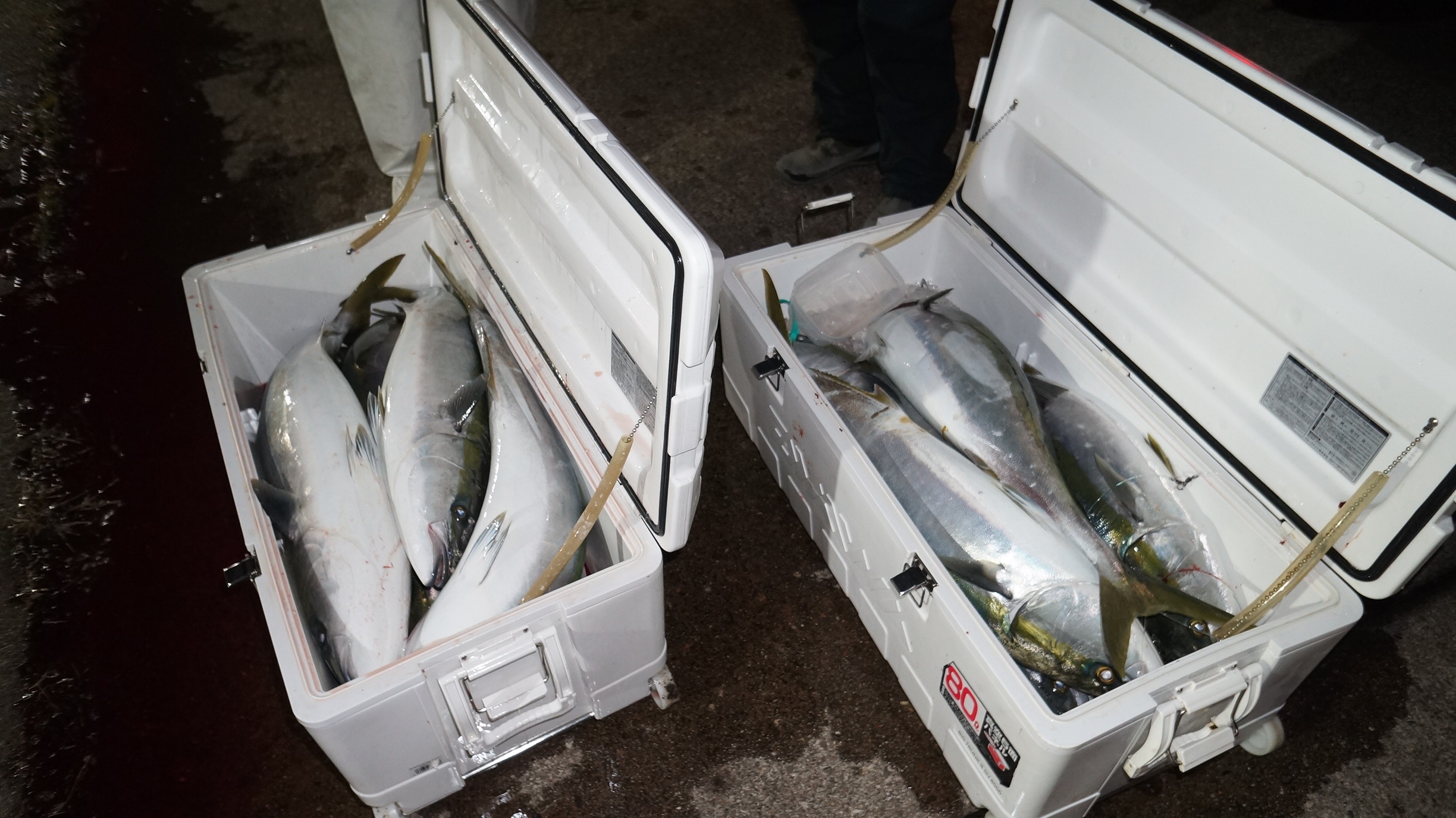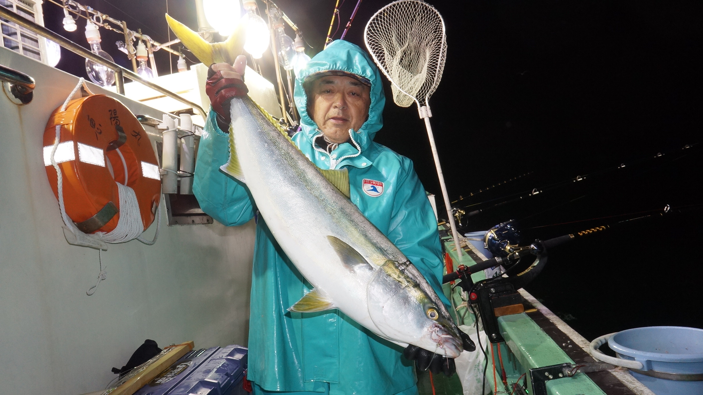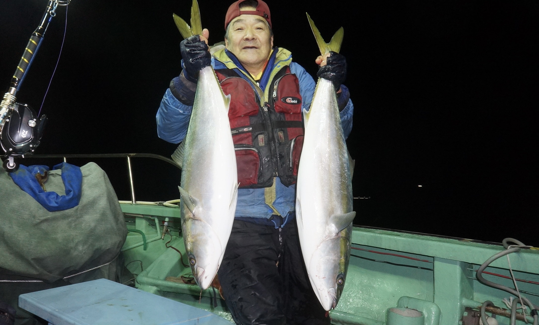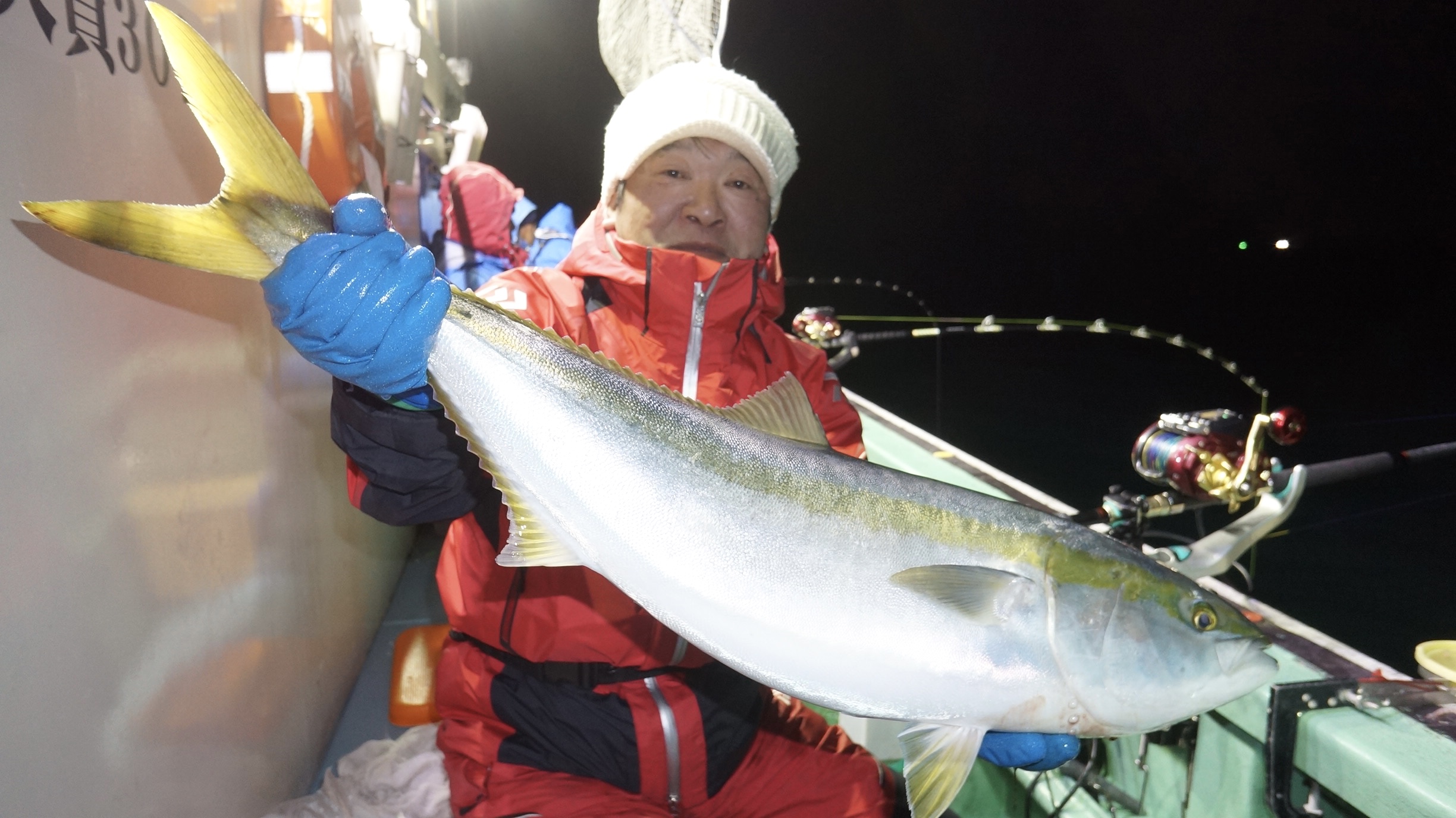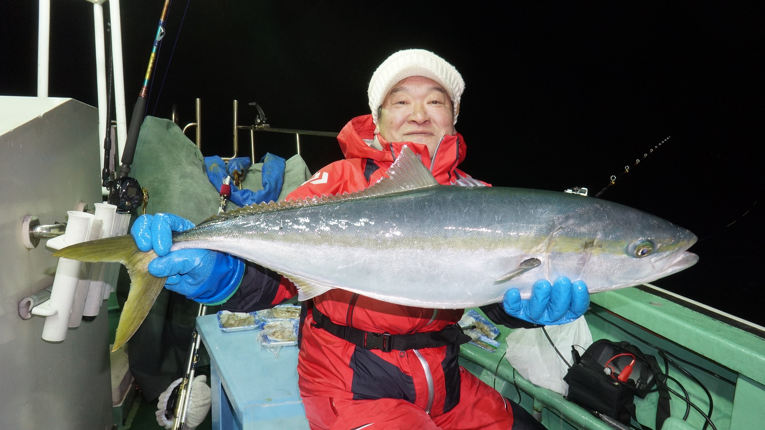2023年12月30日粟島沖夜ぶり真鯛五目釣り釣果 つり情報 2024年01月01日 本日天候に恵まられ、12月なのに、昨日と違いベタ凪に、魚影流れ良く、集魚灯点灯まもなく 大型ぶり8〜14k、入れ食い始まり、爆釣果、竿頭19匹、船中130匹以上、20時30分沖上がり、 年明け3日より天候確認して、出船します。御予約お待ちしております。
