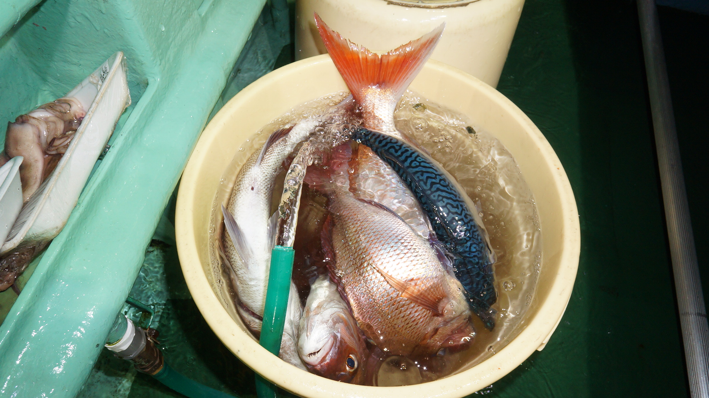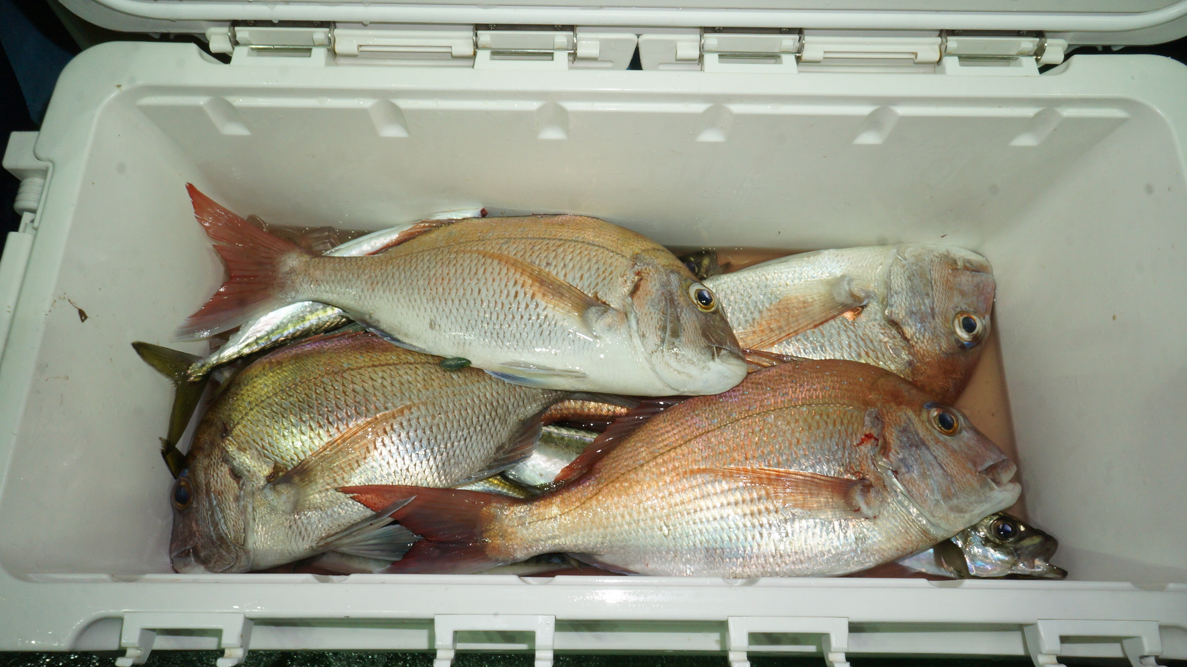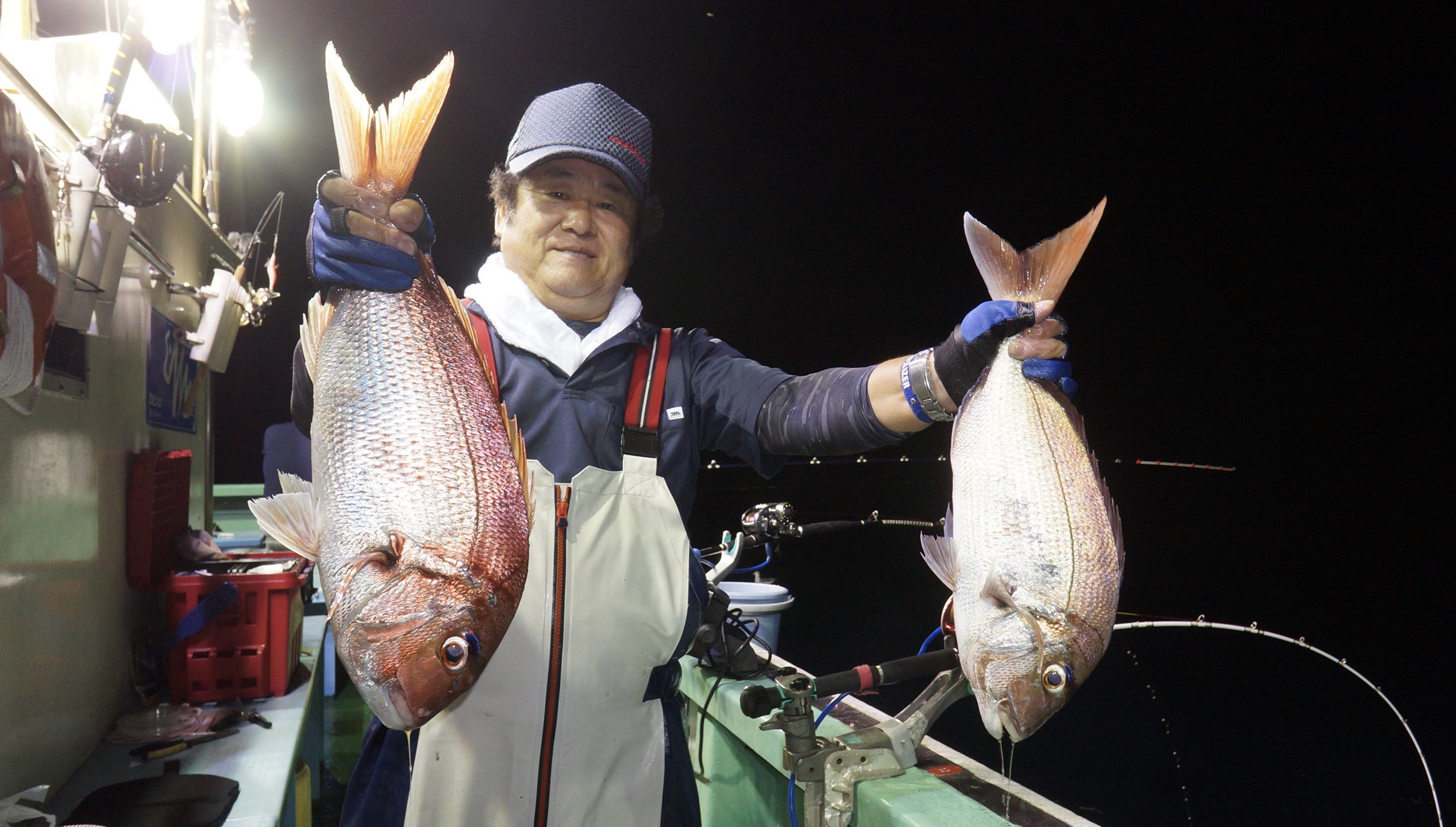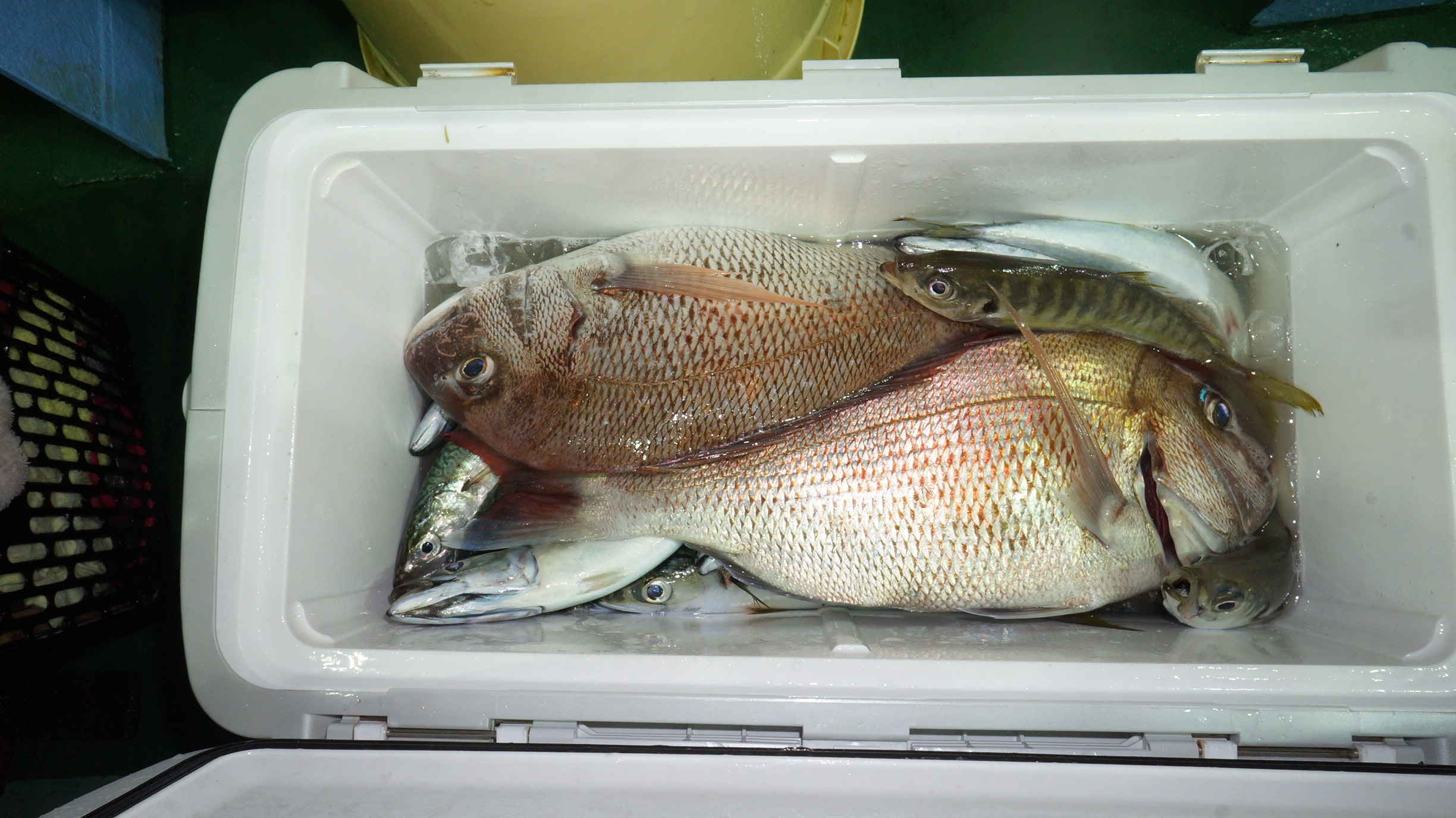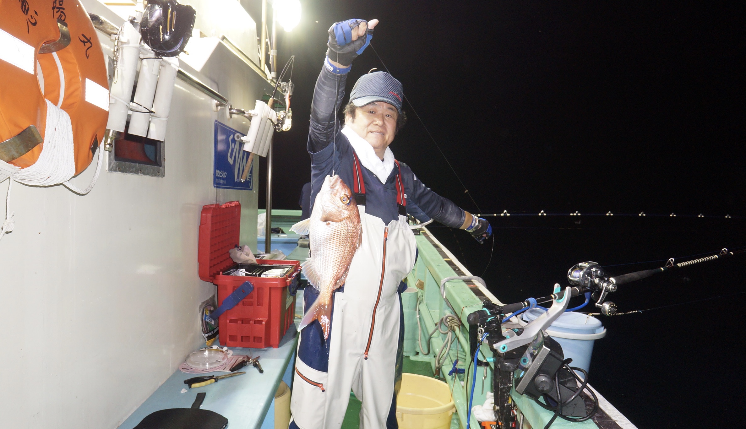 2023年9月15日粟島沖夜真鯛五目釣り釣果 つり情報 2023年09月16日 本日海上多少波有り、後半穏やかに、流れ魚影流れ良く、真鯛2〜5.8k船中64匹、竿頭17匹 イナダ多く、真鯛苦戦しましたがこれかは、青物ぶり、ヒラマサが、始まります。 御予約お待ちしております。