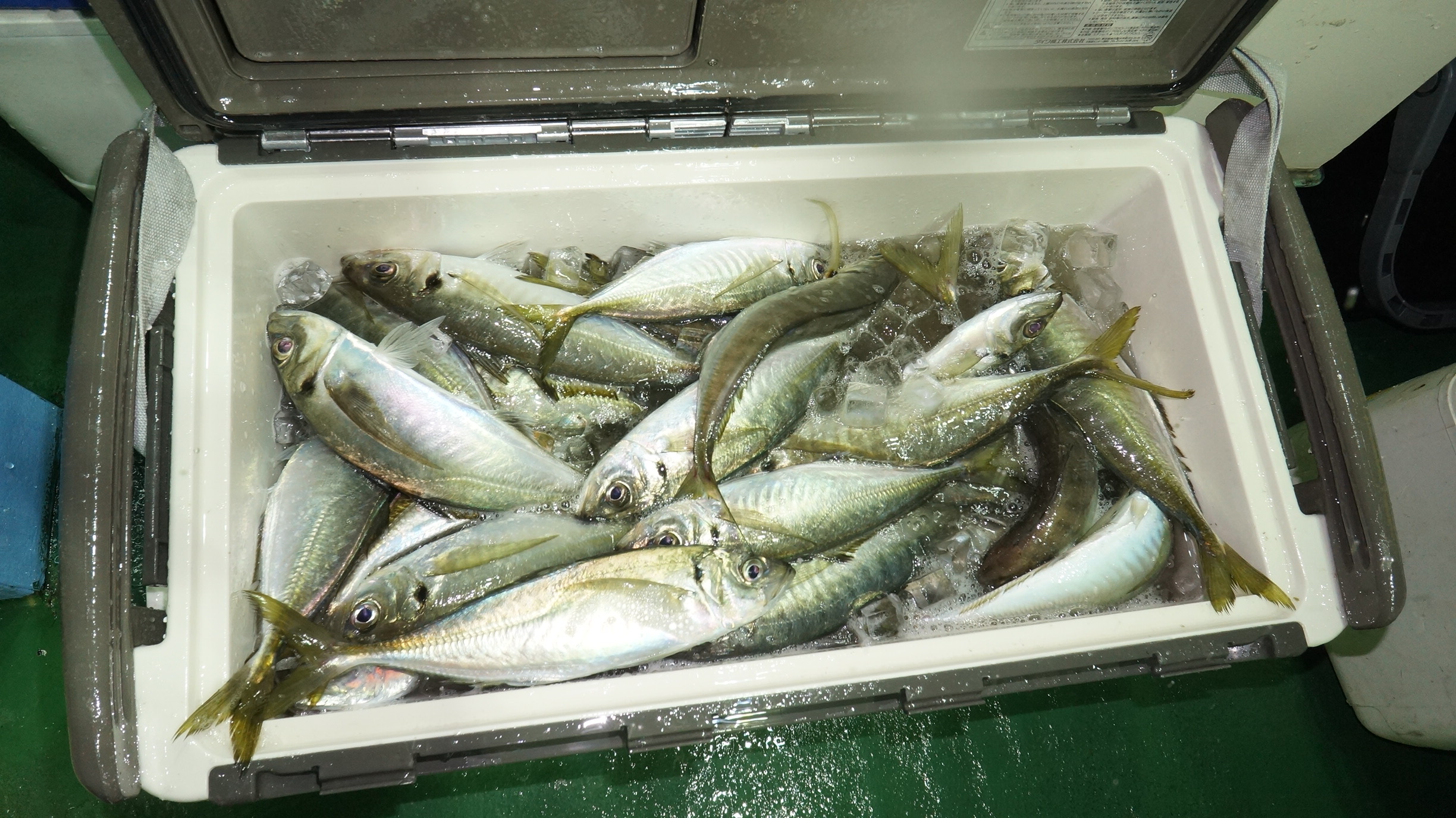 2023年5月20日岩船沖夜アジ真鯛五目釣り釣果 つり情報 2023年05月21日 本日も海上穏やか、魚影良く大型アジ、サバ、入れ食い大漁しました 他、大型真鯛、スズキ、イナダ釣れました アジ真鯛、例年どうり食い活発に、 御予約お待ちしておりますす。