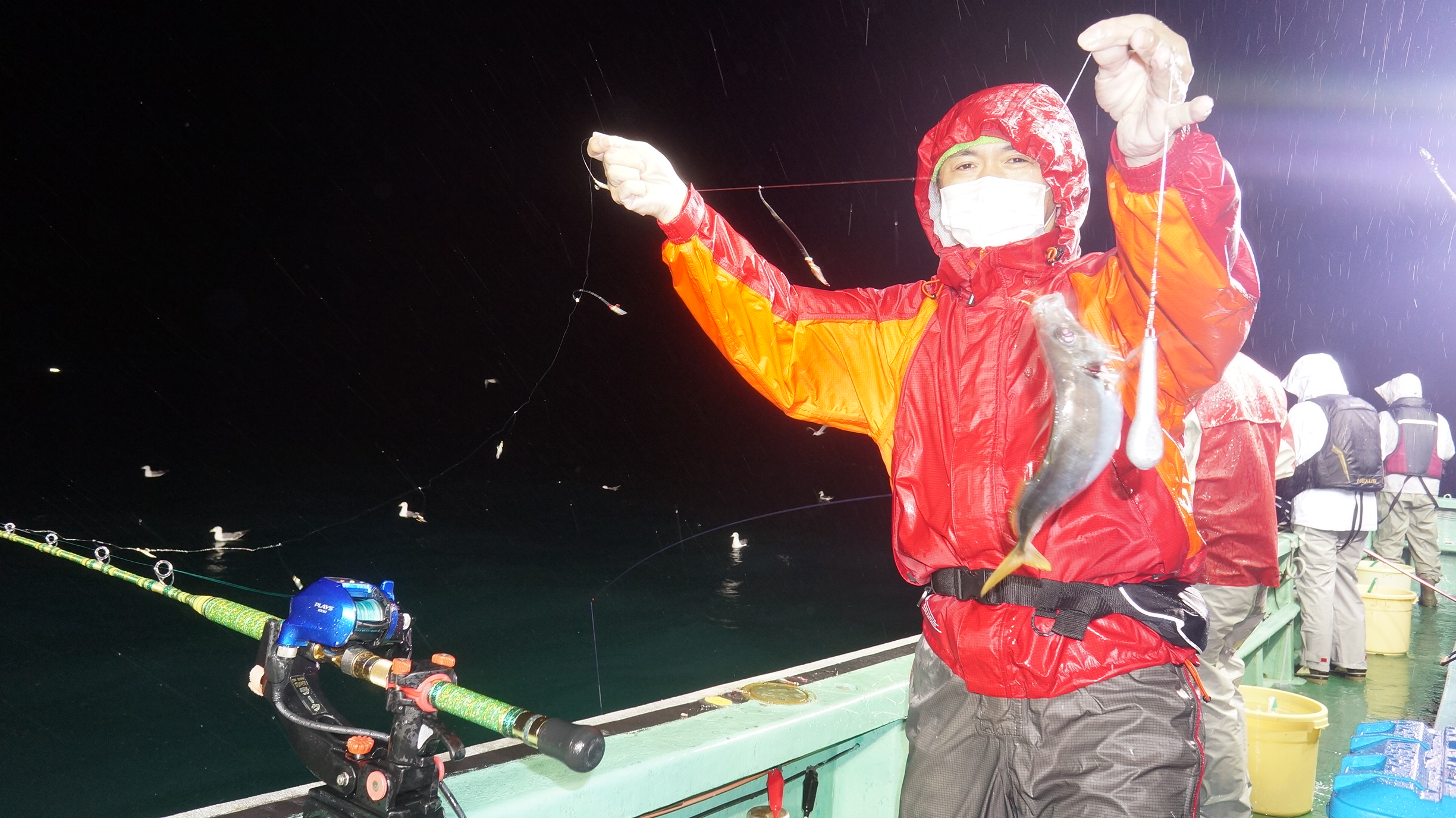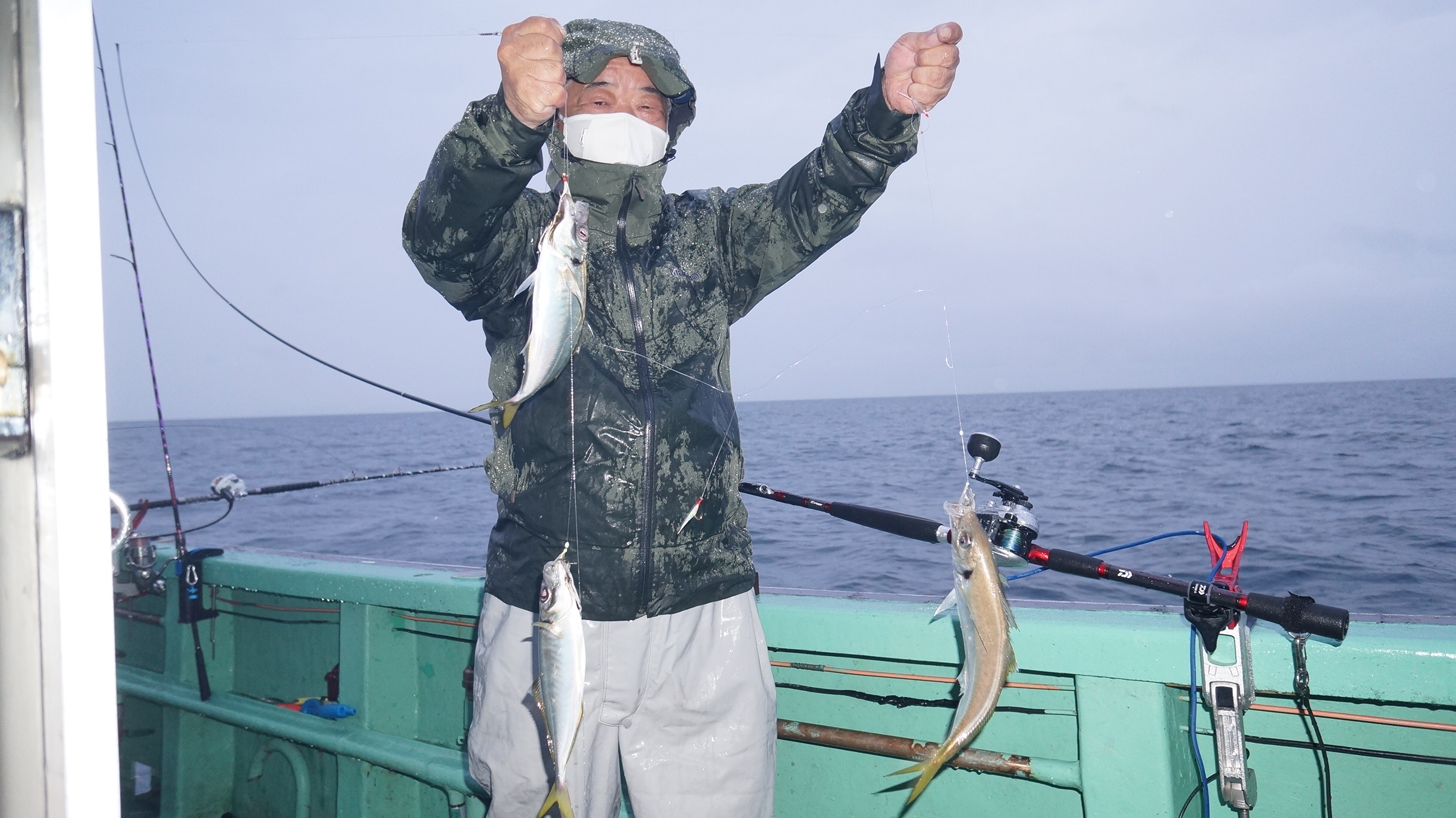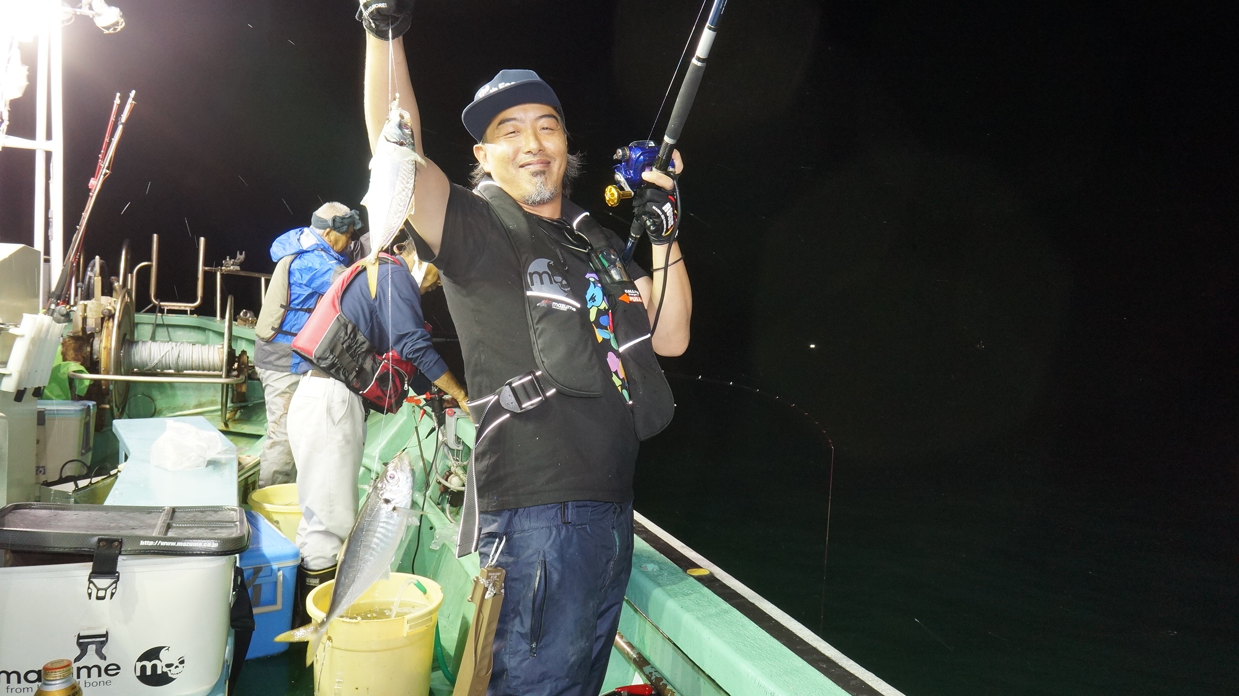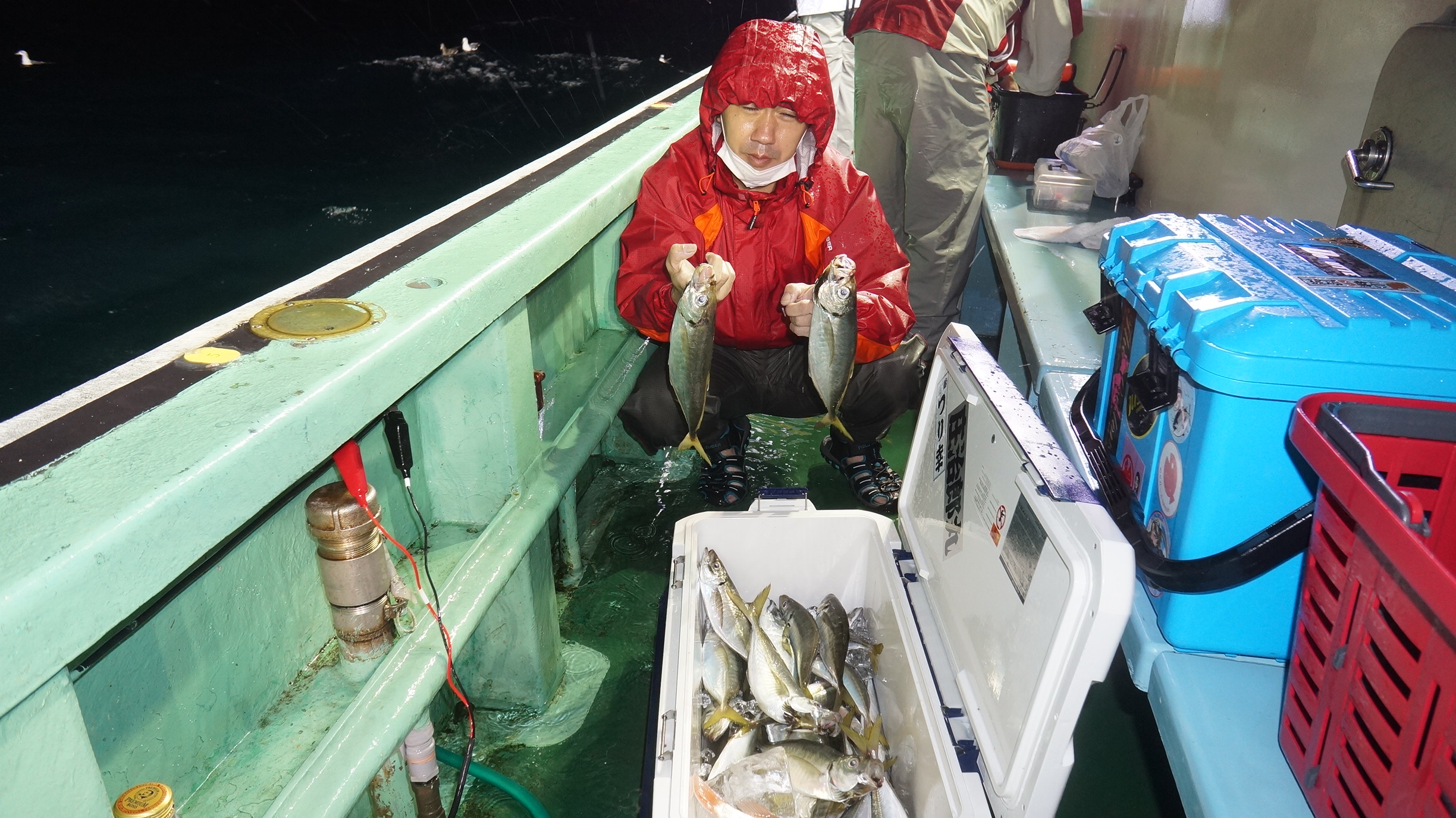 2021年8月14日岩船沖夜アジ真鯛五目釣り釣果 つり情報 2021年08月18日 本日海上穏やかでしたが、雨、魚影良く明るい内から、大型アジ釣れ始め、爆釣、大漁しました。 他真鯛、サバ、 アジ真鯛有望御予約お待ちしております。