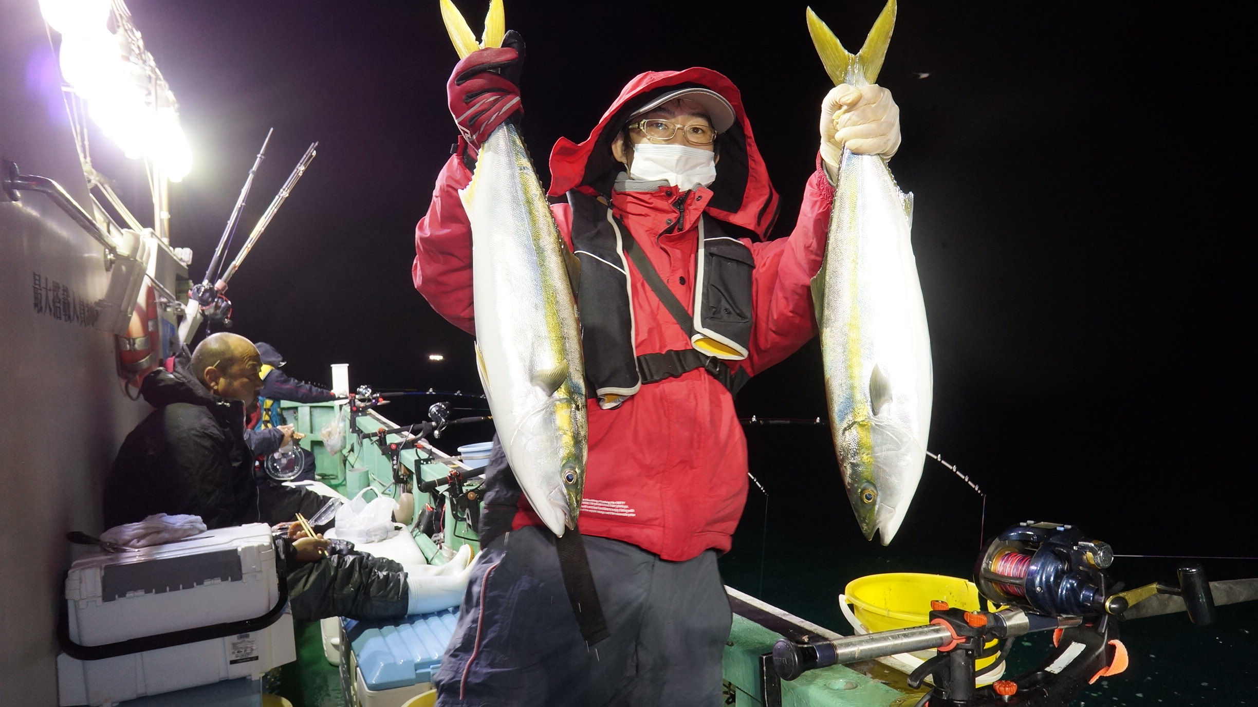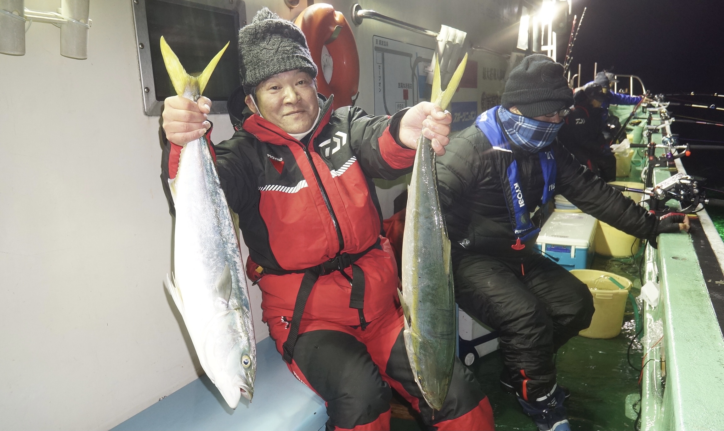 2020年11月14日粟島沖夜鰤真鯛五目釣り釣果 つり情報 2020年11月15日 本日天候回復晴れ、海上穏やかに、鰤、ワラサ多数匹大漁、真鯛流れ無く苦戦 水温19度これから寒鰤有望、御予約お待ちしております。