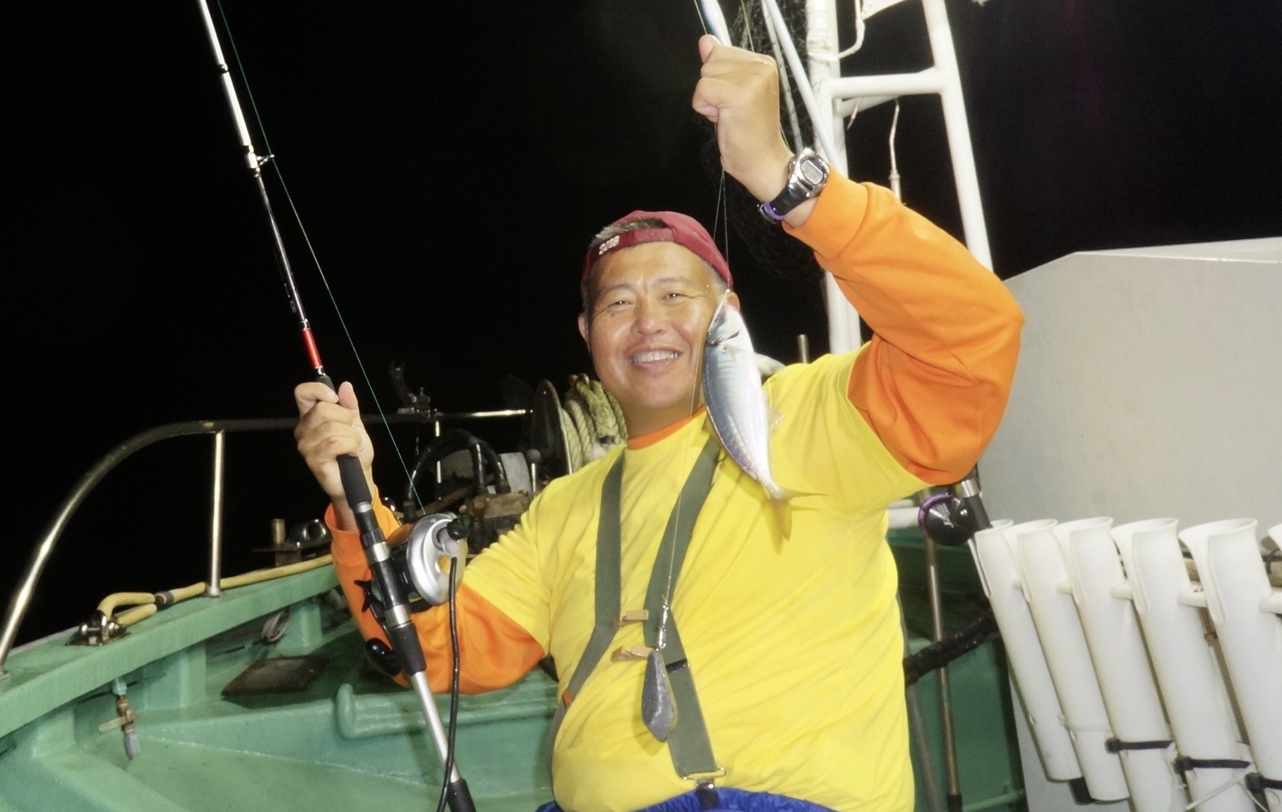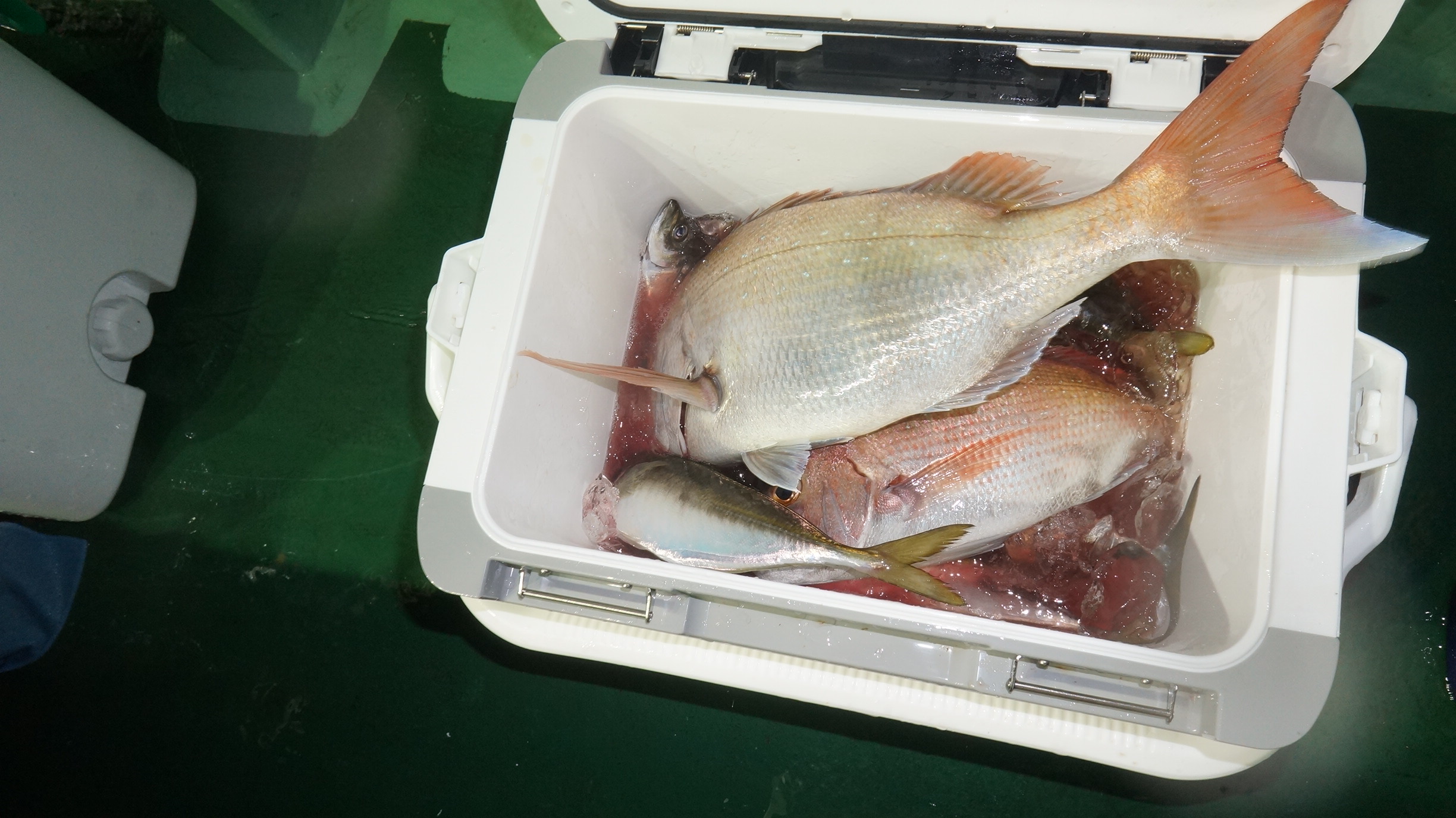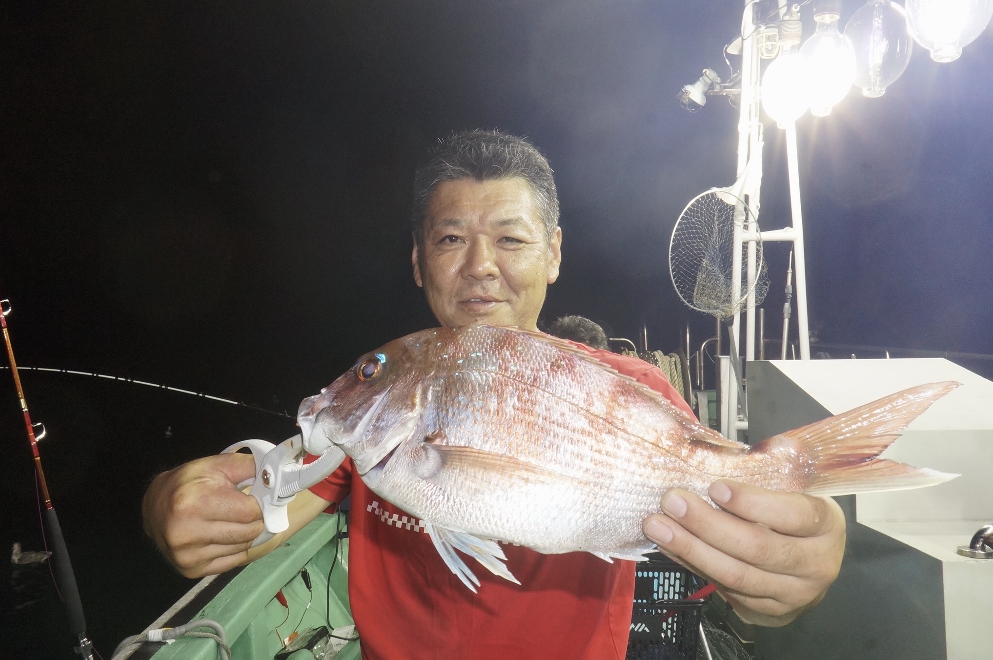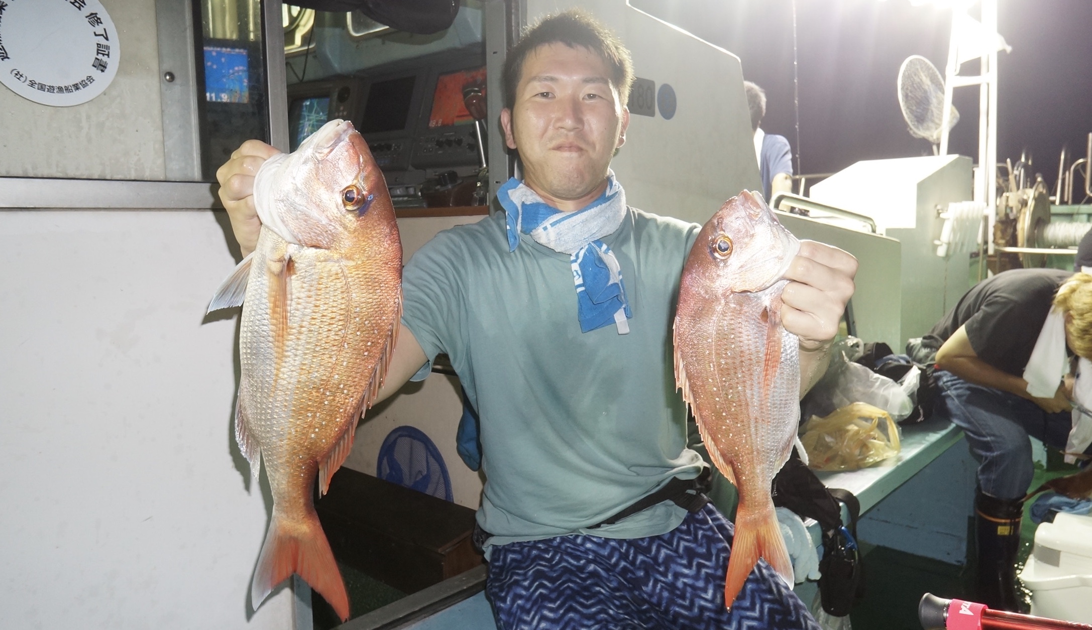 2020年8月9日岩船沖夜アジ真鯛五目釣り釣果 つり情報 2020年08月10日 本日予報悪く、集合時出船判断の、お客様で出船、魚影流れ良くアジ入れ食い大漁しました 真鯛も、大型真鯛他、多数匹釣れました、アジ真鯛有望御予約お待ちしております。