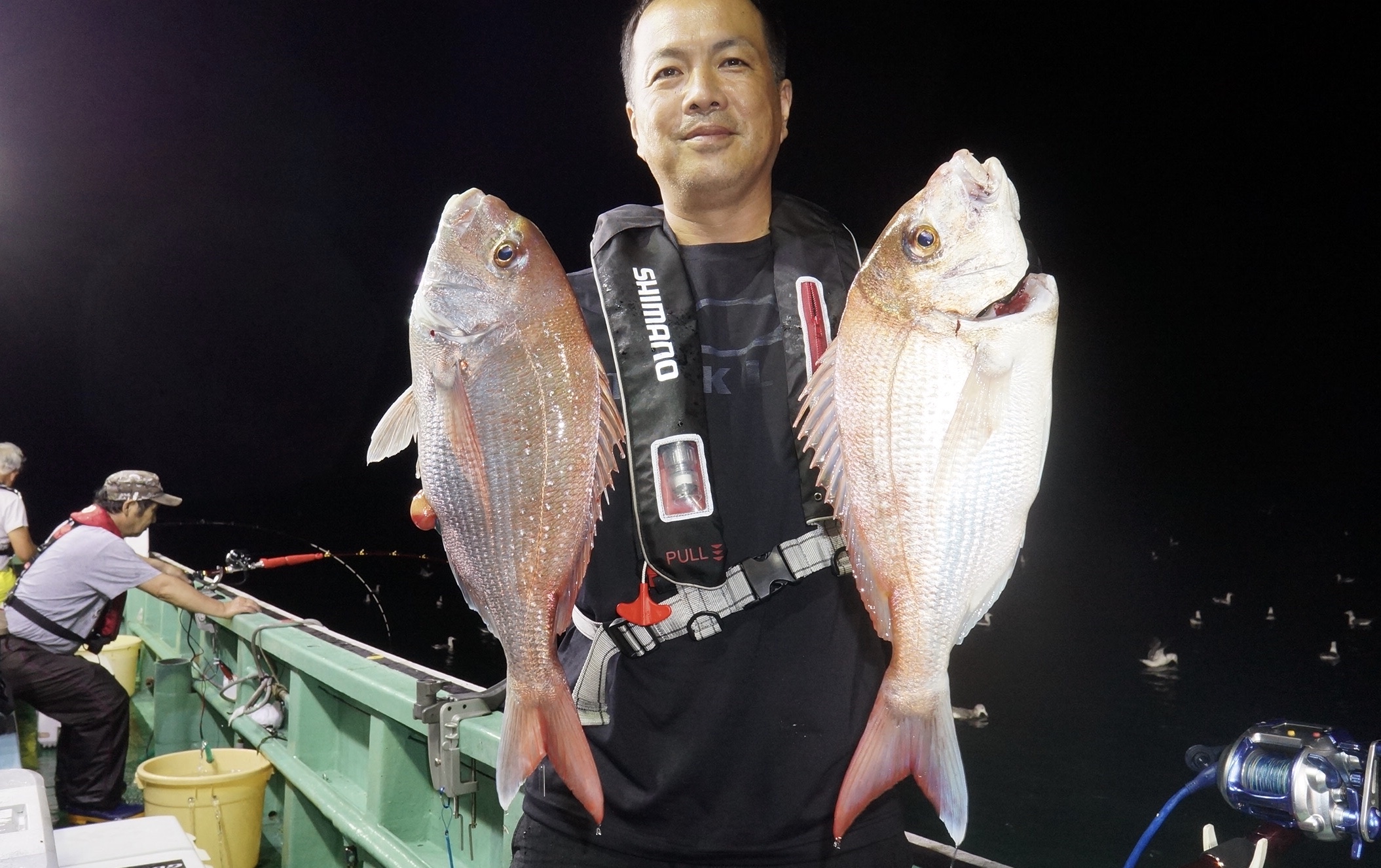 2020年8月13日岩船沖夜アジ真鯛五目釣り釣果 つり情報 2020年08月14日 本日海上穏やか流れ良く、昨日と、違いアジ、真鯛多数匹、スッテのお客様アカイカも釣れました アジ、真鯛、アカイカも、有望、御予約お待ちしております。